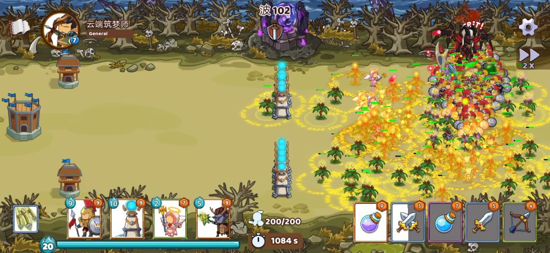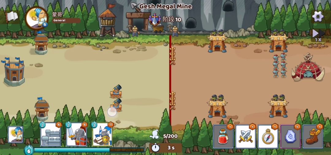 关键部队 圣骑士:奶人,目前最强奶爸 金盾牌:抗伤害和打输出。金盾牌在传说级卡片的伤害算前三,技能攻击力翻倍,戳一下2600伤害。坦度和圣骑士差不多,配合圣骑士奶量。能抗住最后boss输出。 夜精灵:加提升攻击力buff和aoe伤害清理小怪。 艾尔文箭神,主力输出。高攻高攻速,特别是后面的飞行boss。 德鲁伊:主要前期插树抗伤害,怪物刷新很快,前期没有累积大量兵力无法快速消灭怪物。圣骑士数量过少不容易累积兵力。这时德鲁伊可以帮我们度过这段最艰难的时期。7秒一树还肉。 其他的随意 项目:两个法瓶能帮你快速累积兵力,普通7级只有0.78/s的法力回复。带上两个法瓶最高1.74/s。快了二倍多。然后两个加攻击的,一个加暴击的就可以了
