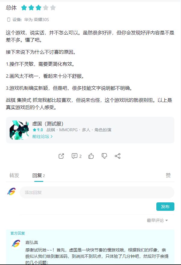 ~~玩家评测回帖~~