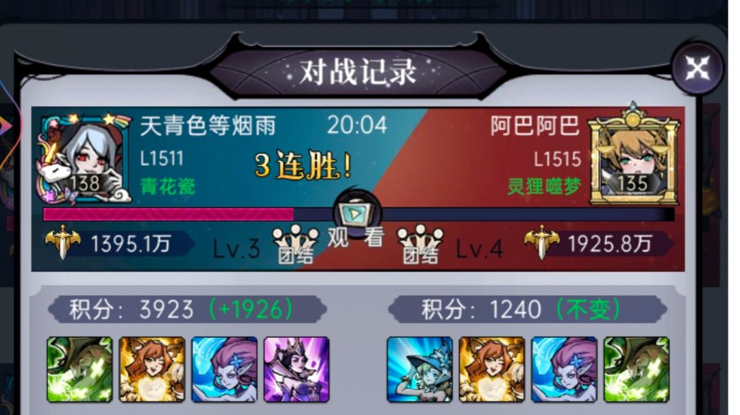 暗系战士队伍推荐我这一套,巫师一速桃子二速,皇后速度不用太快,只要在黑桃大招锁灵前给对面叠加死亡印记就行,黑桃的伤害主要还是二三回合锁灵的穿透重击,所以皇后以自保为主(主要是叠加死亡印记)。魔偶的话黑桃带魔剑,马琳带熊猫。