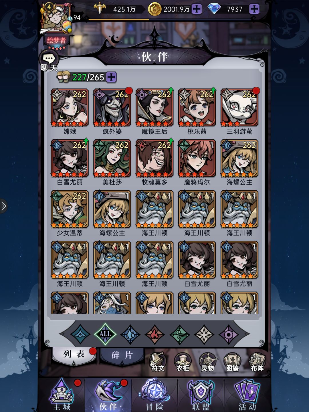 首先,我是比较莽,因为前期抽到了几只嫦娥,加上taptap有关于嫦娥的阵容攻略,所以我直接在一开始就玩的嫦娥阵容。 先给大家看看我的面板和阵容 可看到我的阵容是三羽、外婆、皇后、桃子和嫦娥。目前三羽的星级比较低,但其实影响不大。队伍的总战力是425万,等级是262级。 在嫦娥的符文方面,其实很多人有一个误区,认为全堆攻击是最好的,其实嫦娥如果堆控制,实际效果非常强。嫦娥加强后本身的倍率很高,很容易