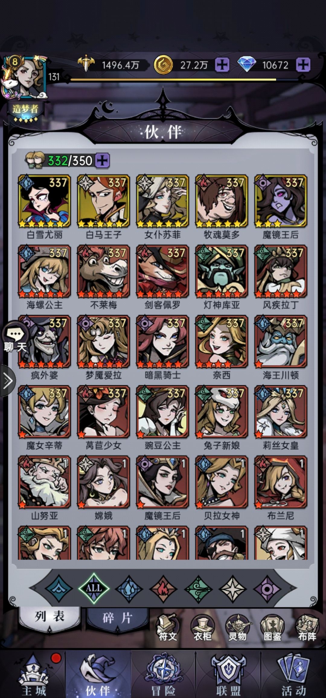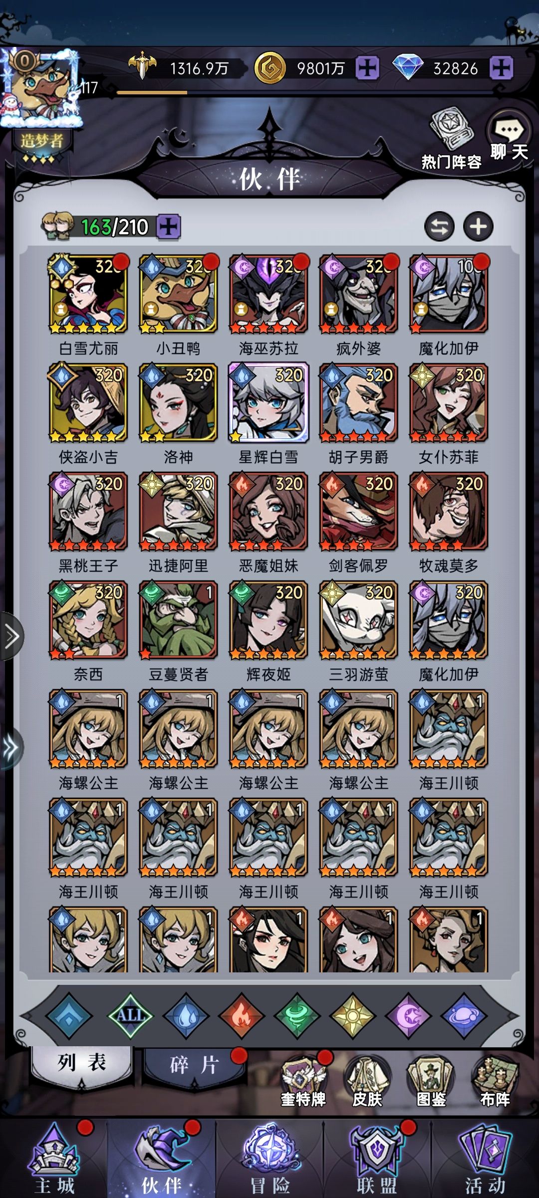 本游戏体验93天,目前自认对游戏理解已经极深,现在整理一个攻略出来,重点说一下伙伴选择问题,萌新和大佬们看了后可以少走些弯路。 这游戏能用的伙伴分神话,传说,史诗三个级别(紫色及以下不消说的,没用),史诗卡玩到中期淘汰掉,成长率太低,前期过渡时候可以使用 首先逐系介绍一下伙伴(只讲神话和传说) 水系神话级: 战士:白雪,高伤害单体切后排,非常好用,目前版本对于微氪土豪都是必养的伙伴,也是本体最易获