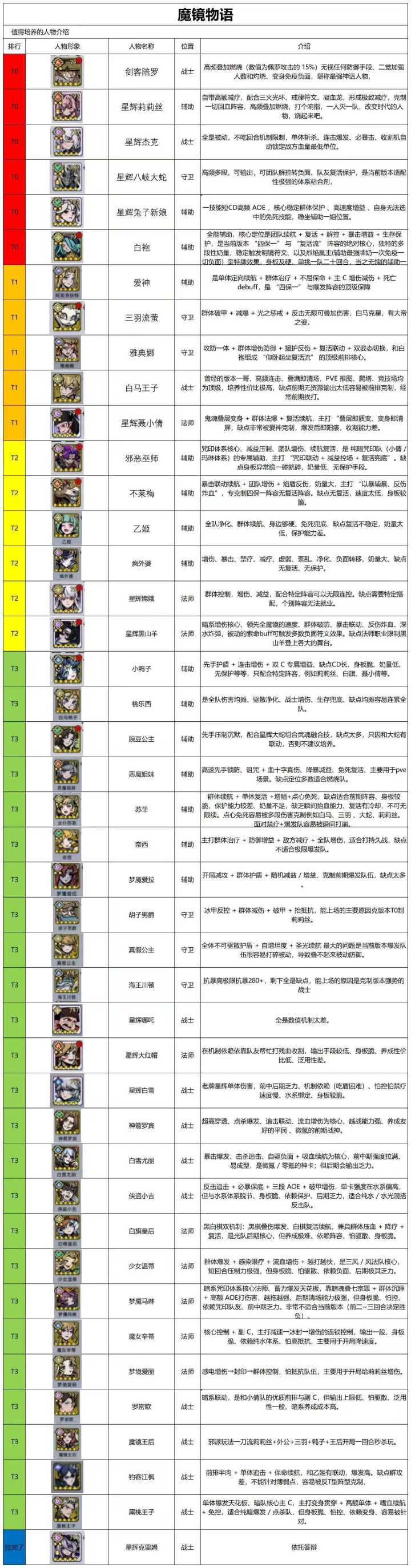 魔镜物语强度一览表