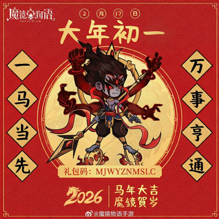 魔镜物语👻#魔镜物语 大年初一,开门见喜[马上有福]雪雪子给您拜年啦~愿所有的美好都“马”不停蹄地奔向您!😘(不要忘了领走图中的礼包码嗷~)