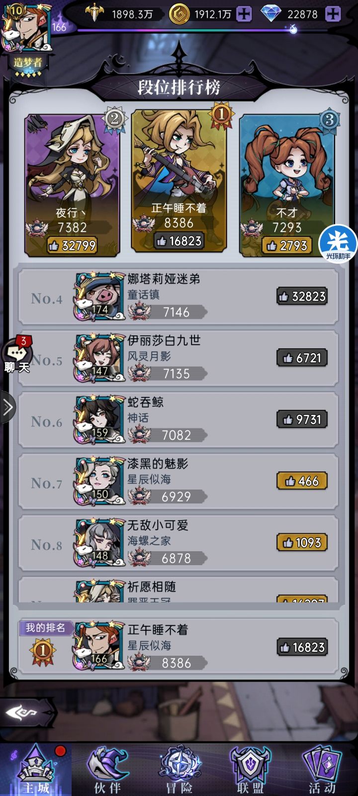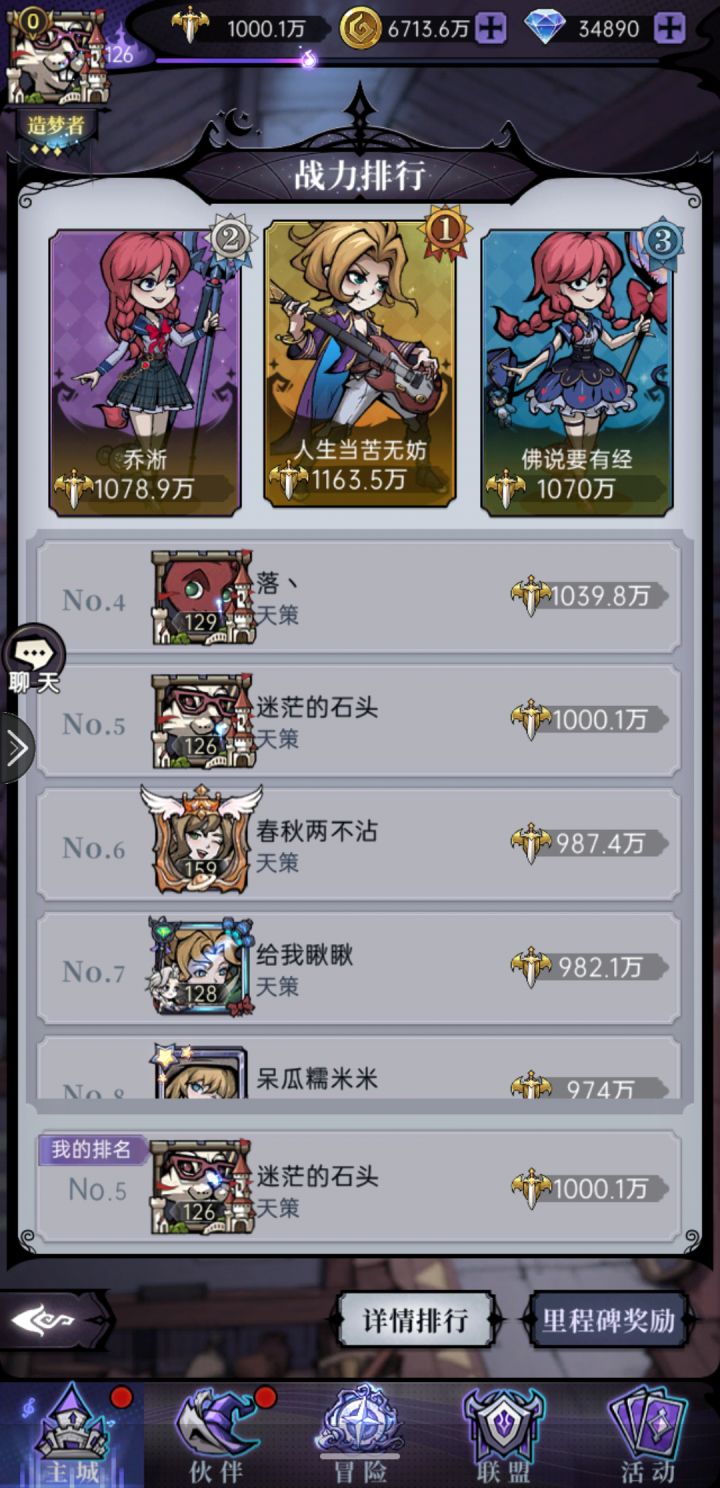 按照我觉得比较靠谱的分榜方式,分为三个榜单,输出榜,辅助榜和守卫榜。分榜方式主要侧重于PVP和泛用性这两方面。(因为是由我个人所列,总会有些个人偏向存在,觉得不合理的地方可以在评论区讨论,严禁引战,谢谢)输出榜T1(强度完全可以支撑作为队伍的主核心)梦境爱丽:(前期强度一般,觉醒后质变,70%的控制概率,能打出80%90%的效果,我们战区奥兹一二名加时赛,曾出现爱丽丝直接控对方全体翻盘)缺