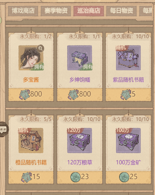 #这城有良田 #这城有良田攻略 巡治活动终于来了,之前不小心攒了1000多个“治乱功绩”忘了兑换,这一次终于可以买多宝酱了~ 注意:巡治九州持续五天,但巡治商店的货币"治乱功绩"和"巡治宝钱"不会过期,可以长期囤积。所以即使像我这样忘记兑换,也不必担忧,下次活动开启时依然可用。 货币获取方式 活动期间,玩家通过击败山贼和叛军获取货币。每日可获取180治乱功绩和120巡治宝钱,五天活动累计上限分别