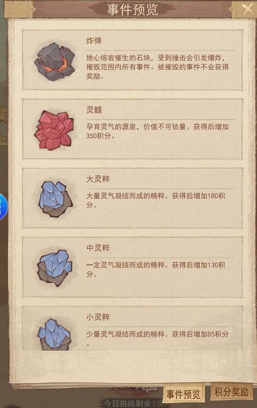 活动类似 “黄金矿工”,操控矿工挖掘矿石. 每日免费2次抓取机会,可以花30元再购买两次抓取机会。 矿石价值:灵髓(350分)>大灵粹(180分)>中灵粹(130分)>小灵粹(85分)>大灵石(75分)>中灵石(40分)>小灵石(20分)。 隐藏陷阱:炸药桶触碰即炸。 得分核心: 1、僚属选择大胡子(钩锁往返速度提升20%)、其次选择李孝恭(积分增加15%)。 2、开始前15秒优先拿到道具,包括大