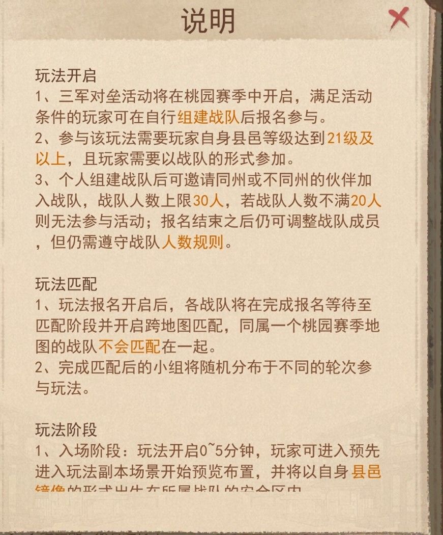 三军对垒低战玩家高分技巧 在《这城有良田》的三军对垒活动中,低战玩家常因战力差距陷入 “被碾压 — 亏损资源 — 发育滞后” 的恶性循环。但通过精准抱团报名和聚焦瓮城驻守策略,即使战力不足也能稳定获取高性价比收益。以下结合实战经验,从报名分组、驻守机制、收益最大化三方面拆解核心玩法。 一、报名阶段:拒绝 “高战陪葬”,精准抱团入低压力组 1. 组队原则:战力接近 + 人数精准控制 避坑关键:绝不与