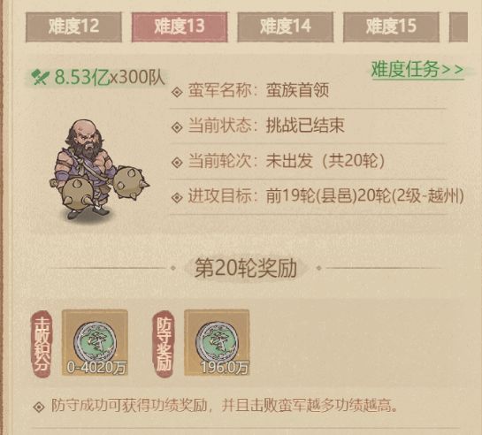 #这城有良田 #这城有良田攻略 我所在州大约有80个活人,州实力大概在地图排第三,但蛮族成绩能打到第二,州管理们都可以参考这篇攻略试试,毕竟排名越靠前,奖励越多~ 蛮族入侵是州级团队活动,每周可开启一次。活动开启后,州内成员进入免战状态,共同抵抗20轮蛮族进攻。前19轮蛮族小怪攻击各县邑,最后一轮蛮族首领直攻州主城。活动设1-19级难度,难度越高奖励越丰厚。 州功绩排名取决于全员贡献,其中防守成