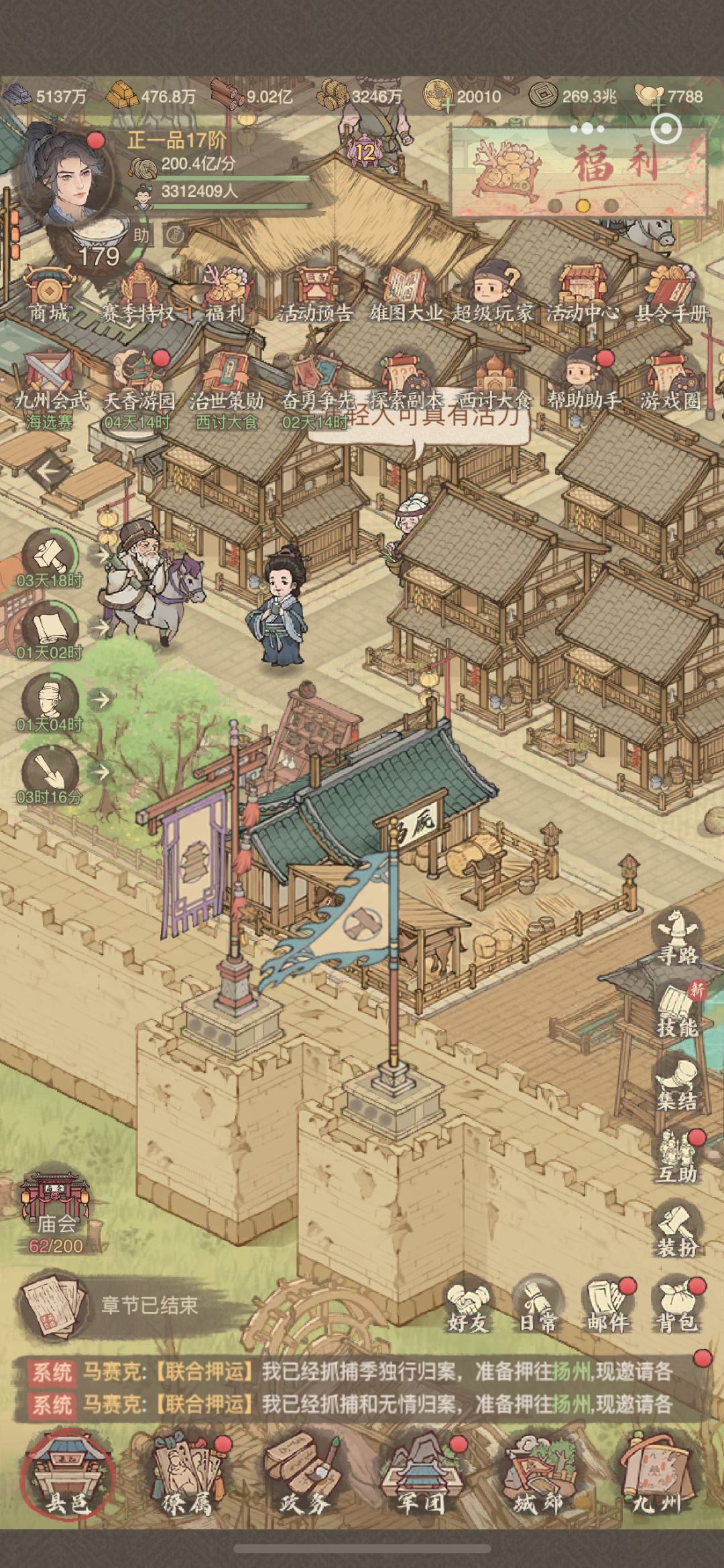 治世策勋是贯穿整个赛季的任务,奖励丰厚,但要完成它的难度比较高,我将按治世策勋的任务模块给大家一一分析: 一、发展篇—难度评级中等 官匠营的50次设备打造次数稍微麻烦点,如果能在前一赛季末提前与州里的人交换好材料就非常简单了。招贤和城建的版块对于0氪和微氪玩家有较大压力。 二、势力篇—难度评级容易 就采集资源需要平时记得种田,毕竟这是一款良田为名的游戏哦,如果嫌种田时间过长,就在商店买锄头