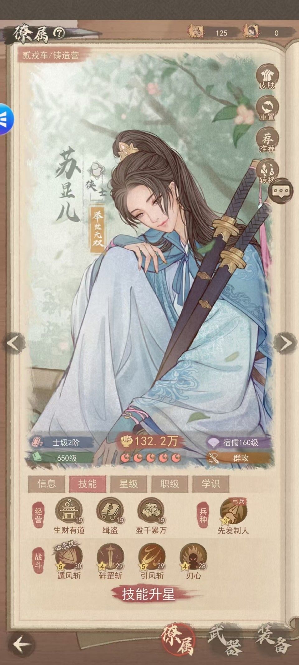 通用升星原则 主 C 优先:苏显儿、李白、李秀宁的必杀技需优先升 5 星。 控制先行:引风斩(苏显儿)、沉默(李白)、怯战(吕布)等控制技能优先升星。 阵容联动:李秀宁 + 鱼玄机(回怒)、花木兰 + 杨玉环(加速)。 资源分配:前期主升苏显儿、李秀宁,中期培养李白、小青,后期补足宁姚、花木兰、吕布。 一、 苏显儿(群攻控制) 定位:先手压制 + 群体破甲 引风斩(控制核心):优先升 4星(1.5