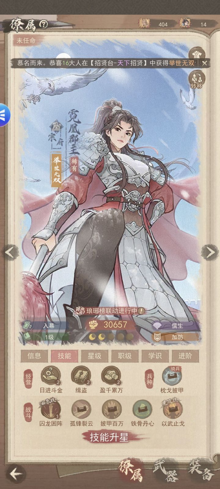 一赛季僚属搭配氪佬:花木兰、绫清竹(李一桐)、杨玉环、王昭君、樊梨花微氪:李白(聂隐娘、苏显儿)、绫清竹(虬髯客)、杨玉环(文成公主)、王昭君、樊梨花(梁红玉)平民:李白(苏显儿)、绫清竹(虬髯客)、文成公主、王昭君(张果)、樊梨花(梁红玉)特别注意:一赛季能延续到史话的僚属目前有林动、绫清竹、杨玉环、樊梨花。这几个在白嫖的选项里优先选择僚属养成僚属战力主要分为几个方面,星级、等级、
