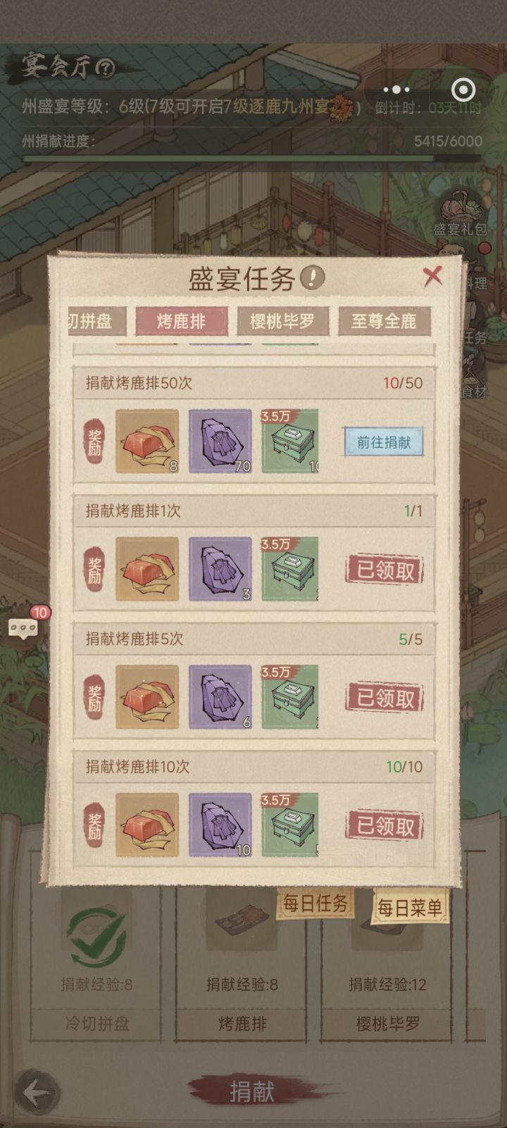 州盛宴是游戏里每赛季固定开启5天的福利活动,零氪、微氪玩家都能轻松拿高级强化石、金砖、星辰石这些实用资源免费获取击败5次叛军:给10个香料(最稀缺!重点攒,做核心菜品必备),组队打更快,单次5分钟,每天集中打一次就行。击败20次山贼:给20个蔬菜,选低等级山贼刷,单次2分钟,分两次刷完不费时间。采集600万资源:给20个面粉,优先采8级以上资源点,用个采集加速卡,1-2小时就能完成。训练