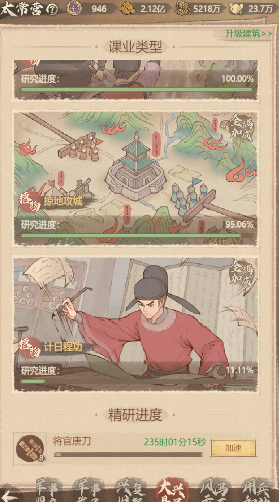 1、经济建筑问题。雕像配比其它不说了。之说基础18块钱商城里的白泽像买了之后放西市,就是你第一个市场建筑,配比是桑基鱼塘如图: 点开这4个随便一个建筑,选择推荐,选择桑基鱼塘。 然后下掉不良司,学堂,金矿,木材,粮草,南市,北市的所有僚属,重新打开西市,选择经济加成最高的3位僚属任命 人物下方的百分比就是僚属的经济加成。选择最高的任命。之后任命南市,北市,金矿,粮草,木材,不良司和学