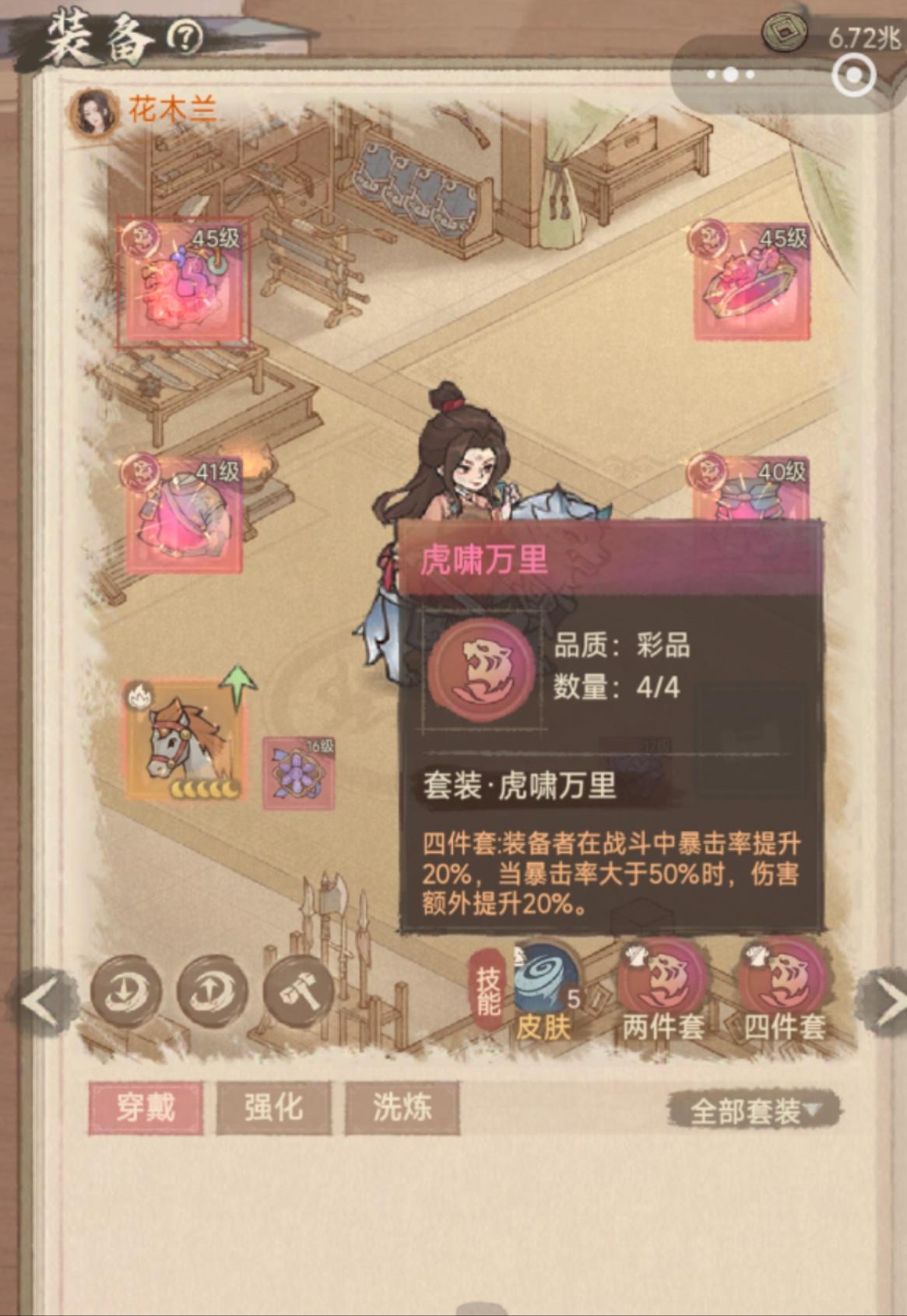 一、装备部位优先级每个僚属都有4个装备位:玉佩、手环、上衣、下装。这4个部位的提升效果和造价不一样,打造顺序直接影响战力增长速度,新手记死这个顺序:玉佩 → 手环 → 上衣/下装1. 为什么按这个顺序来?属性加成:玉佩加的属性最多,是提升战力的“核心大件”;造价对比:装备商店里,玉佩要120装备宝钱,手环80,上衣和下装各50;二、装备套装怎么选?1. 4种套装 虎啸套装:专门加物理