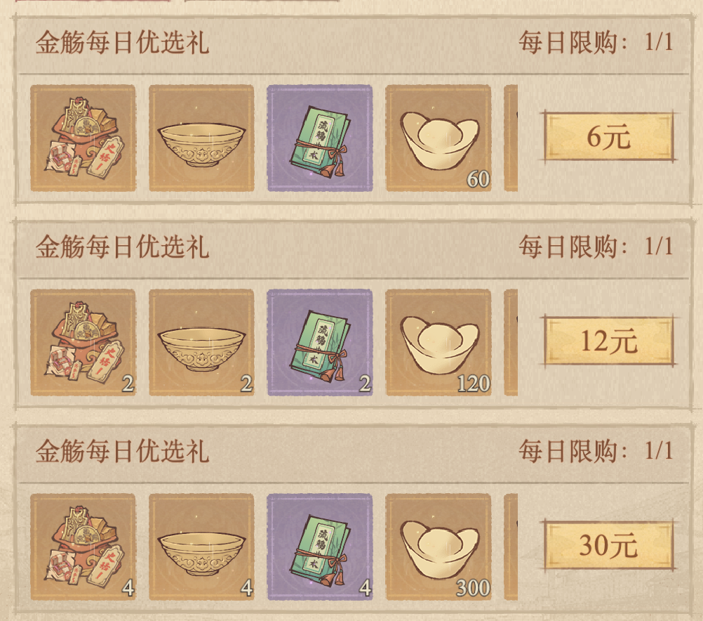 商品选购优先级指南1. 必买(无视折扣):- 金砖:升级城墙等核心建筑的关键,优先级最高。- 紫色/红色/橙色品质书籍礼盒:直接购买。2. 按需购买:- 玄铁锭:仅当主力僚属武器未满30级时补充。- 星辰石:按实际需求购买。3. 折扣好再买:- 建筑/课业加速道具:仅建议5-7折时入手,8折以上性价比低。- 招贤通宝:8折以下可直接购买。僚属是平民和微氪最缺的。没办法每日18的情