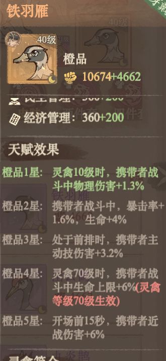 灵禽院上线到现在,大部分活跃玩家至少拿到1个橙色灵禽了。拿到手之后,灵禽要如何养成呢?升级这块相对轻松,平时打叛军活动掉落的绿色、蓝色、紫色饲料,或者孵化出来的那些低品质垃圾鸟,都可以直接当经验喂掉。目前最高等级上限是70级。真正的“拦路虎”是升星系统。这玩意儿不像升级那样只要有材料就必定成功,升星是有概率的,而且消耗的是同品质的橙色灵禽。这就意味着每一只橙鸟都是珍贵的资源。升星机制允许玩家用低