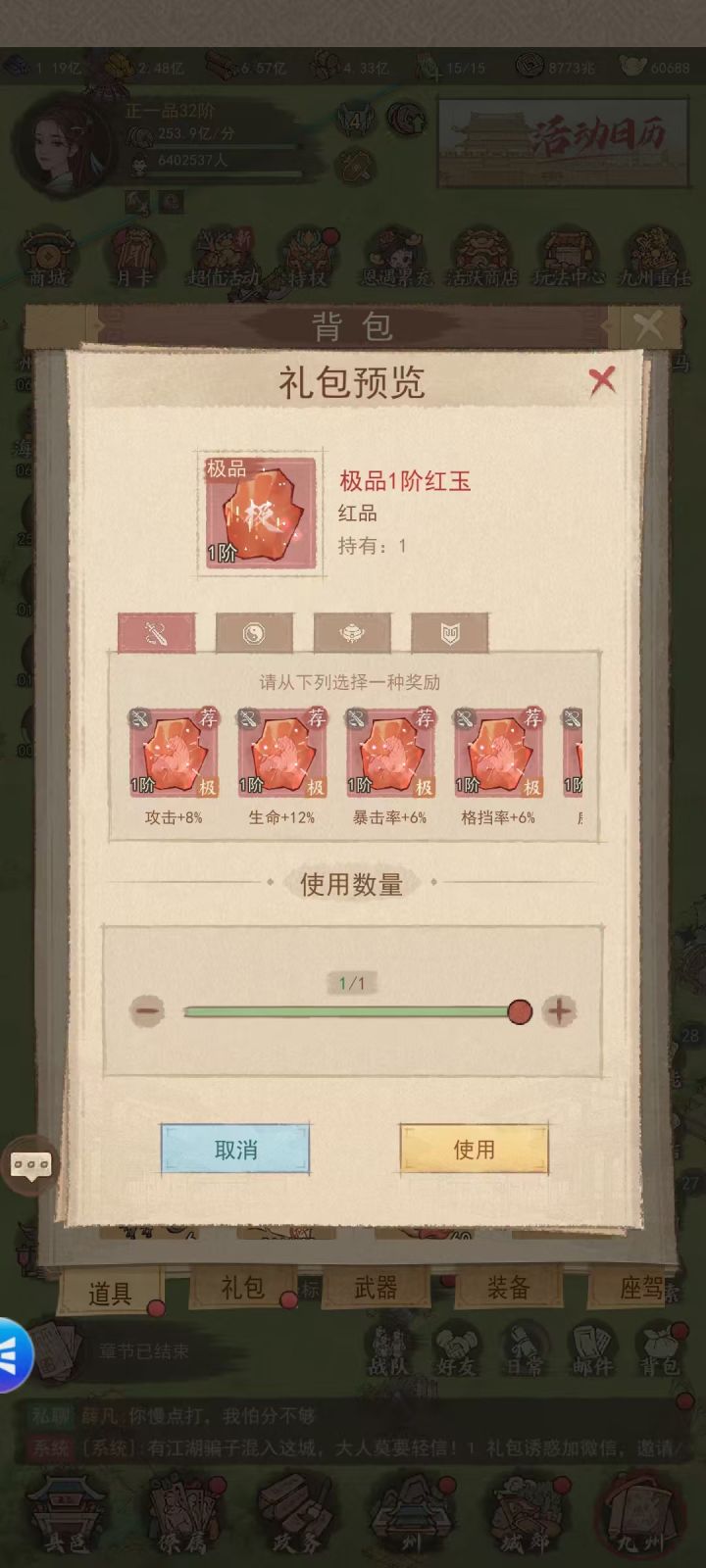 外域商旅是游戏里性价比超高的周期性活动,每个赛季开一次,每次持续5天。一、外域商旅外域商旅就是游戏给大家开的“限时福利商店”,里面卖的道具都是日常很难拿到、对提升战力/发展城池特别有用的(比如红橙书籍、强化材料),而且还能叠加“特赠豪礼”——花够一定元宝,就能额外领大奖,最划算的就是3万元宝和5万元宝两个档位。二、元宝该买什么?1. 必买款(刷到就买,不管折扣,闭眼冲)金砖:不氪金非常难