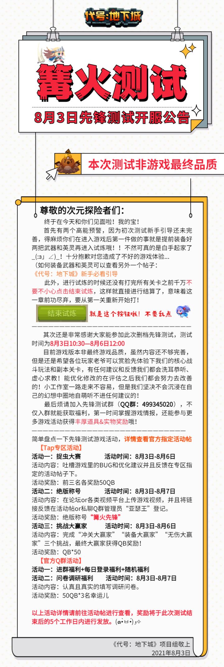 《代号:地下城》篝火测试8月3日先锋测试开服公告