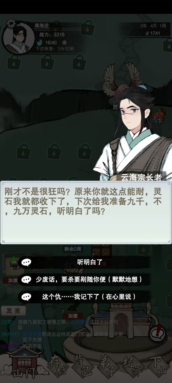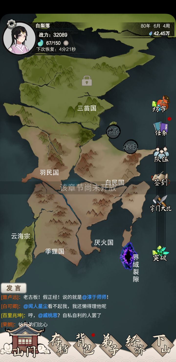 居然就只开了四个副本,没意思,这样子宗门30级之后就会变成肝游了,后期没有突破丹可以磕,基本上30级就可以毕业了