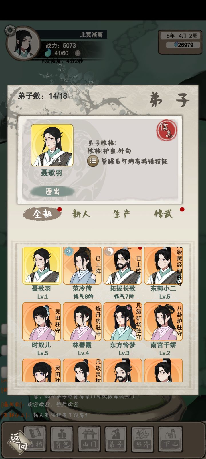 开局你就刷双天(双金)武修弟子,尽量按自己想要的天赋刷,这是个很漫长的阶段,目前版本,火掌门开局的多,就别想太多,刷修武阴,冰,雷,后面来多个修武天赋金的,没事,当工具人养,打秘境是关键,注意,武修目前版本养四个就够,必须双天