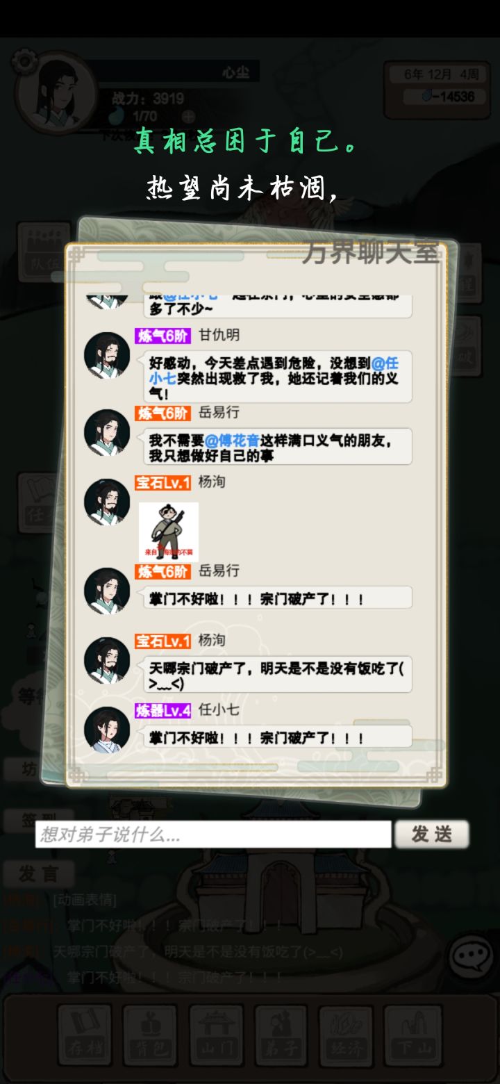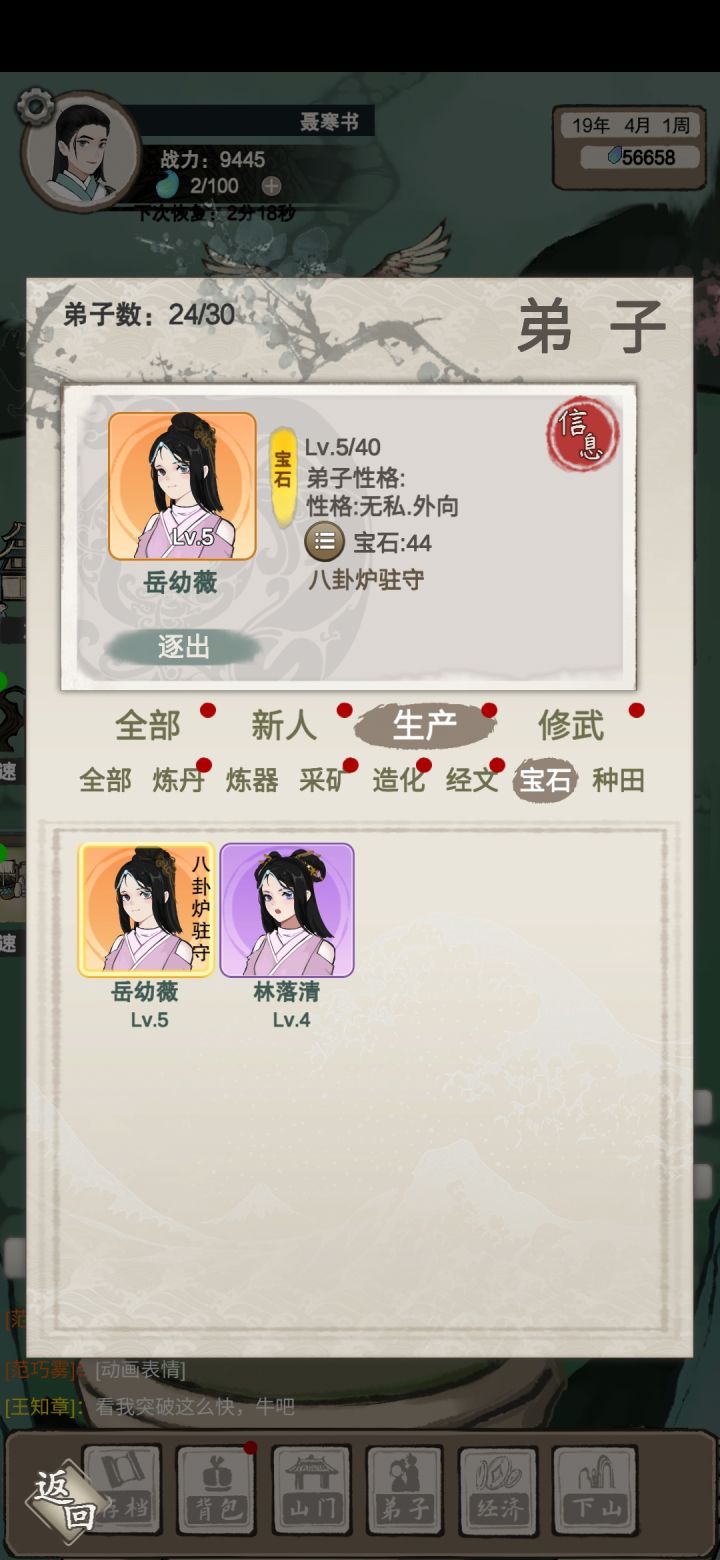 可能有人不太了解这游戏的品质,从高到低,金色,橙色,紫色,蓝色,绿色,所以弟子和天赋最好都刷成最高也就是金色的,前期先别管是什么,反正是金色的就选。
