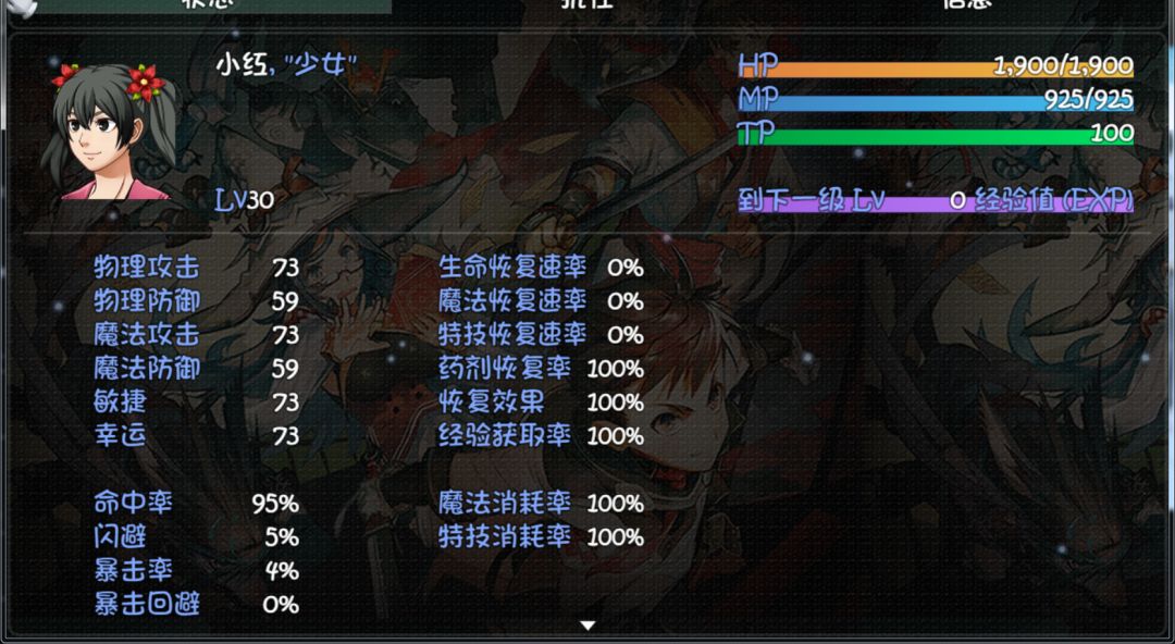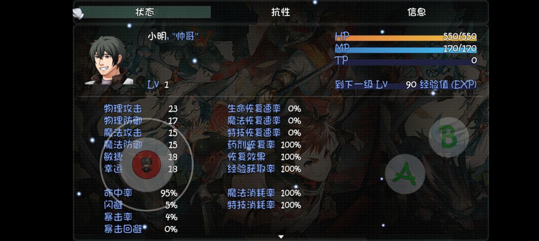 初始属性:HP450、MP200、各项属性为15 【1】在这个世界,如果可以你想扮演哪个角色? ①拯救世界的英雄:无属性 ②毁灭世界的魔王:防御+1 ③保护家园的勇士:无属性 ④行侠仗义的侠盗:无属性 ⑤无所事事的屌丝:无属性 【2】你觉得你是一个怎么样的人? ①暴力狂:攻击+3 ②中二病:无 ③高富帅:金币+200(没有无产阶级之腿技能) ④运动健将:HP+50 ⑤屌丝:攻击+1、防御+1、魔攻