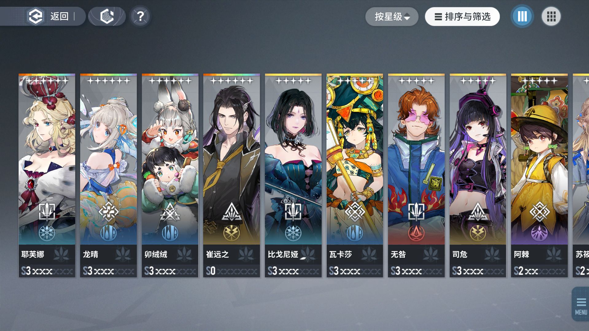 先说下结论,我这边的蚀队在主要对战中只上两个,也能在大多数对战中实现半解放双手。实战上,第三章主线,前几章全自动无压力,中间出现毒雾,把云无月放进去也是直接挂机,后面boss稍微手动一下一次过。 --- 配队: 前四个(先上场的) ①:云无月(蚀队主要输出)+阿棘(控制)/卡洛琳(小奶) ②:比戈尼娅(下图1,1)+崔远之(下图1,3)/司危(下图3,3) 原因&用法 - 在①中,云无月是必上的(