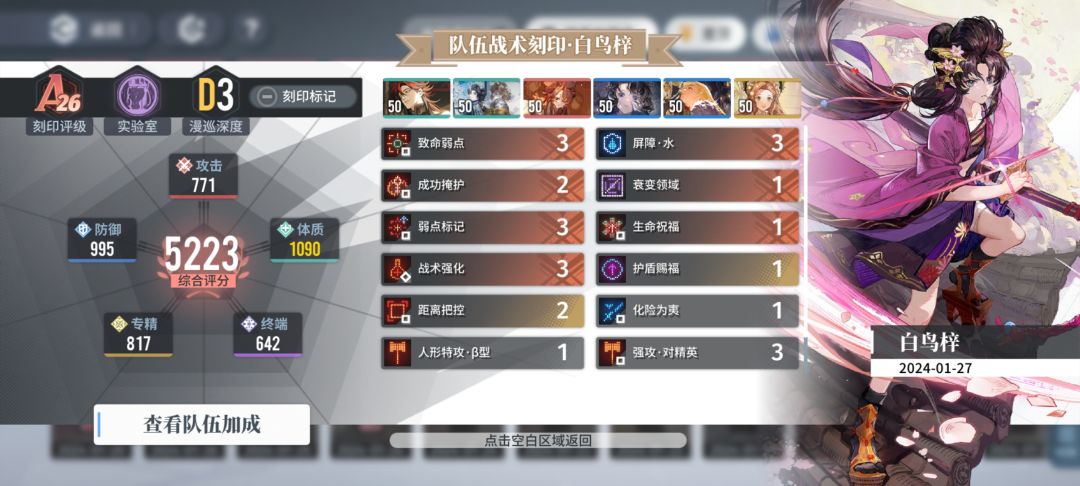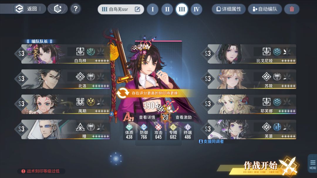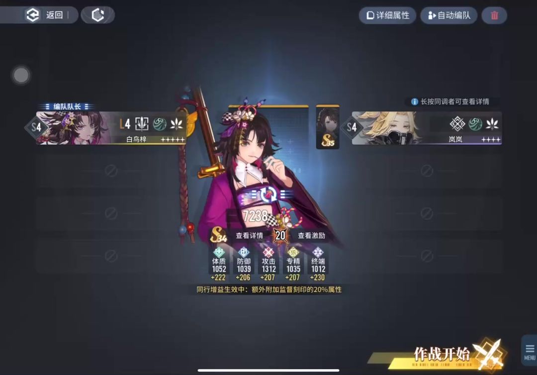 白鸟梓也是没用过的角色,又可以熟悉手感啦~ 卓越10的难度【送10层激励,降低对激励卡的需求】,一个强力角色带一个四星,就很像带娃去游乐场打个架,hhh~ 说回正题,白鸟梓阅读理解——重点:角色吃【攻击】指数,是短期强爆发角色。 一技能燕返,破格挡,优先选取攻击范围内生命值最高敌人。 二技能极意,普通伤害翻倍,且转为风元素伤害,提高暴击率和暴击伤害,持续15s。一技能使用后自动触发。 一花即可解锁