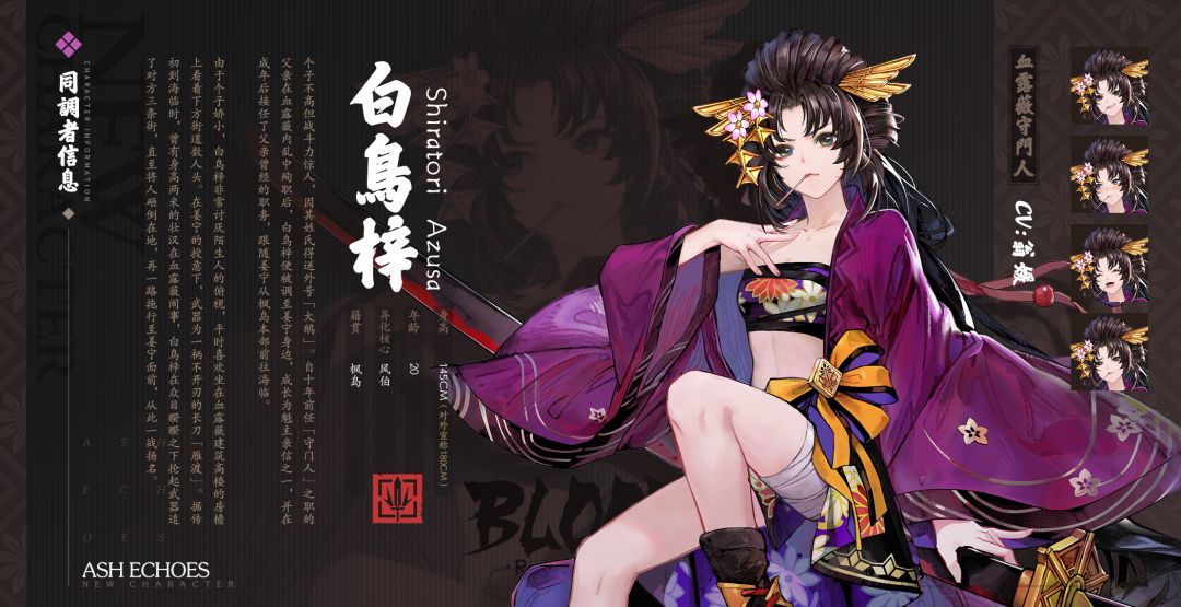 ▎血露薇-成员介绍 𝐁𝐋𝐎𝐎𝐃 𝐑𝐔𝐕𝐈𝐀 ☆白鸟梓 𝐒𝐇𝐈𝐑𝐀𝐓𝐎𝐑𝐈 𝐀𝐙𝐔𝐒𝐀 “守门人在此!来者通名……呃,原来是监督啊?那没事了。” ====================== 【博物学会资料馆】 关于该同调者的情报于森罗历1121年?月?日 收录- 情报来源:■■■■■ ①白鸟梓的“专属定制” ②三三套餐 //编录人:XXL师傅