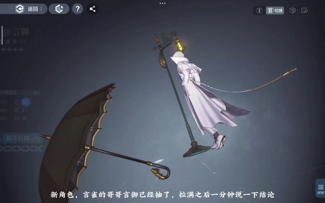 总结一下:言御走的是“奶妈+护盾+增伤+霜元素反应”路线 技能能够提供暴击率加成,护盾 比较全能,能奶能增伤,还能和妹妹一起组队,输出不是很可观,能够替代的位置“龙晴”,但是没有龙晴屏障的抗打,比龙晴(往期奶妈)的伤害高,适用范围有一定约束。 比较适合的体系就是:水,雷,霜。#攻略#白荆回廊#角色攻略#萌新指南