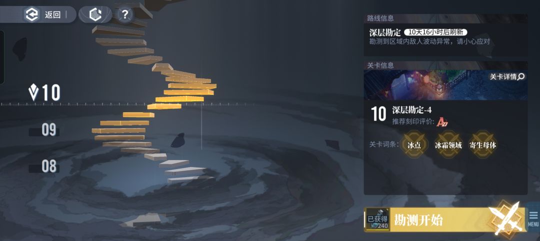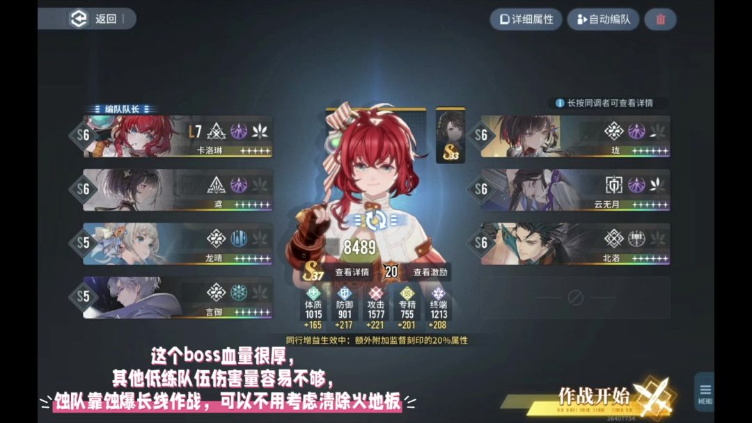 具体配队和技能如图,A24打过的,boss导弹会秒人,不能自动,需要手操躲技能。体质1000以上靠千锤百炼加攻击力,这期的深层对冰系有利,建议升一个比戈利亚。这期对输出要求不高,纯纯新手关。