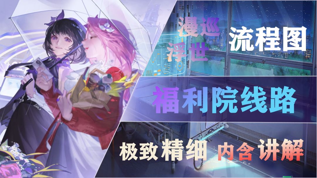 漫巡·浮世 福利院 流程图 现已发布! 为了避免帖子太冗长,这次就不带着之前的流程图一起发了,原来流程图大家可以到群文件里下载。 流程图使用须知: (1)帖子里的图直接看会被压缩,建议点击查看大图或者保存原图后查看 (2)保存原图也糊的可以加群:853364647 在群文件“新版漫巡流程图”里自取,所有攻略文件我都会上传到群文件 (3)所有路线图都会不断更新,方式以帖子为主,有大更新时可能会出一期
