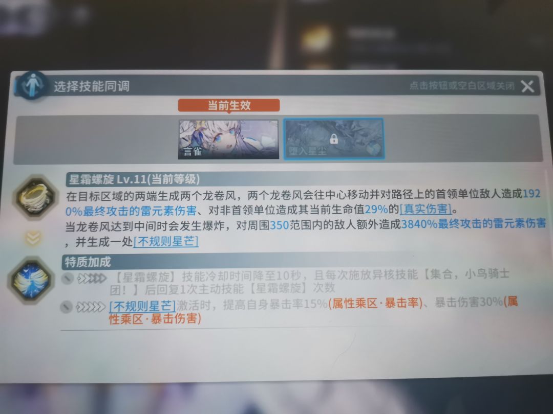 先上暴论:从强度看,给玄戈还债了。 一、队长技能: 三角充能-老生常谈, 水陷抗涣-60%的减抗,多了短暂的迟滞和定身效果,这个更像辅助技能,降低目标70%移速(5秒)和3秒定身,高压环境下,降低操作难度。斗胆预测下一个合计战boss可以移动速度很快和上debuff效果会很严重 二、战斗技能 一技能:纯净声源:一定的伤害,攒一个切分音,为自动技能减少40%的CD,可以叠加三次。 二技能: 自动技能