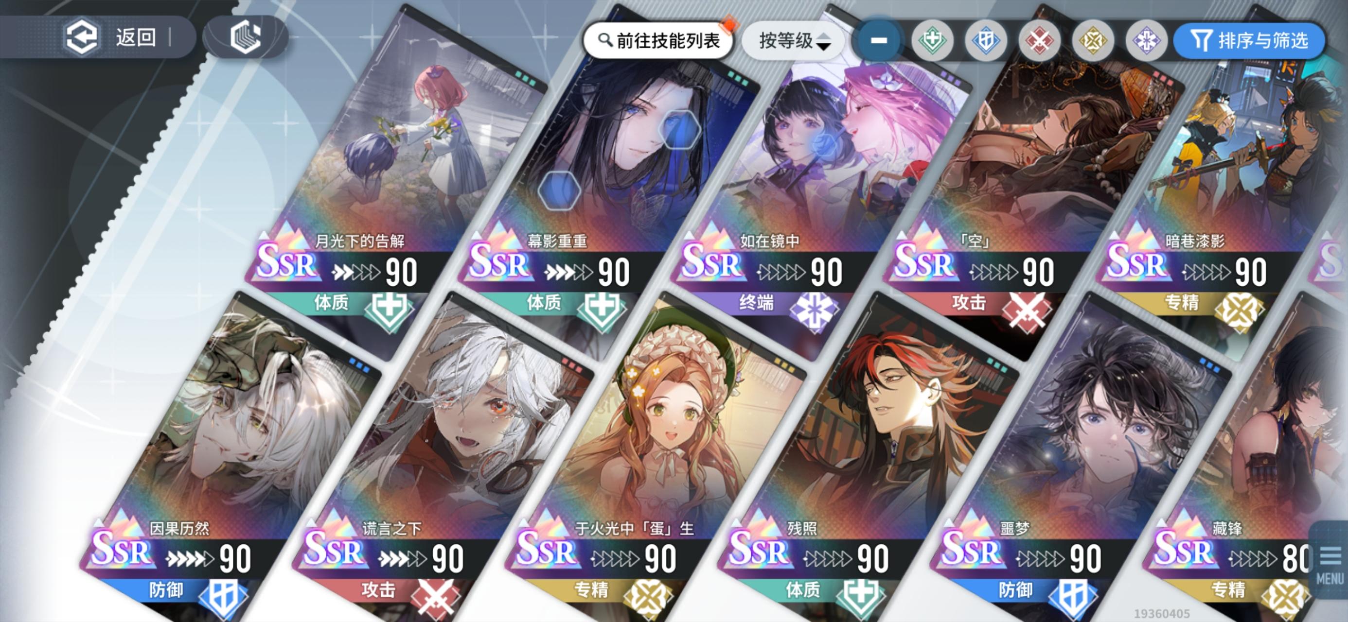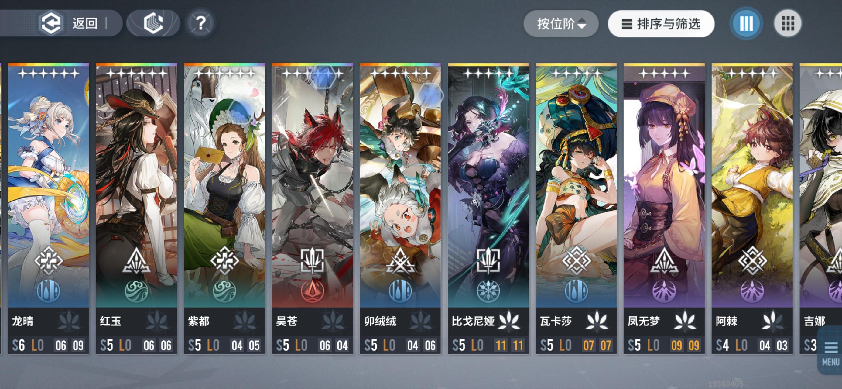 龙晴刷激励用的,刷满换言御。干的用乐无异,湿的用风晴雪。备用老崔。回坑有花有卡的都用上了。乐无异1卡,风晴雪1卡。尤尼和言雀都是3卡,言御那个积分任务做完了选也可以1卡。其他无卡。都在这了。