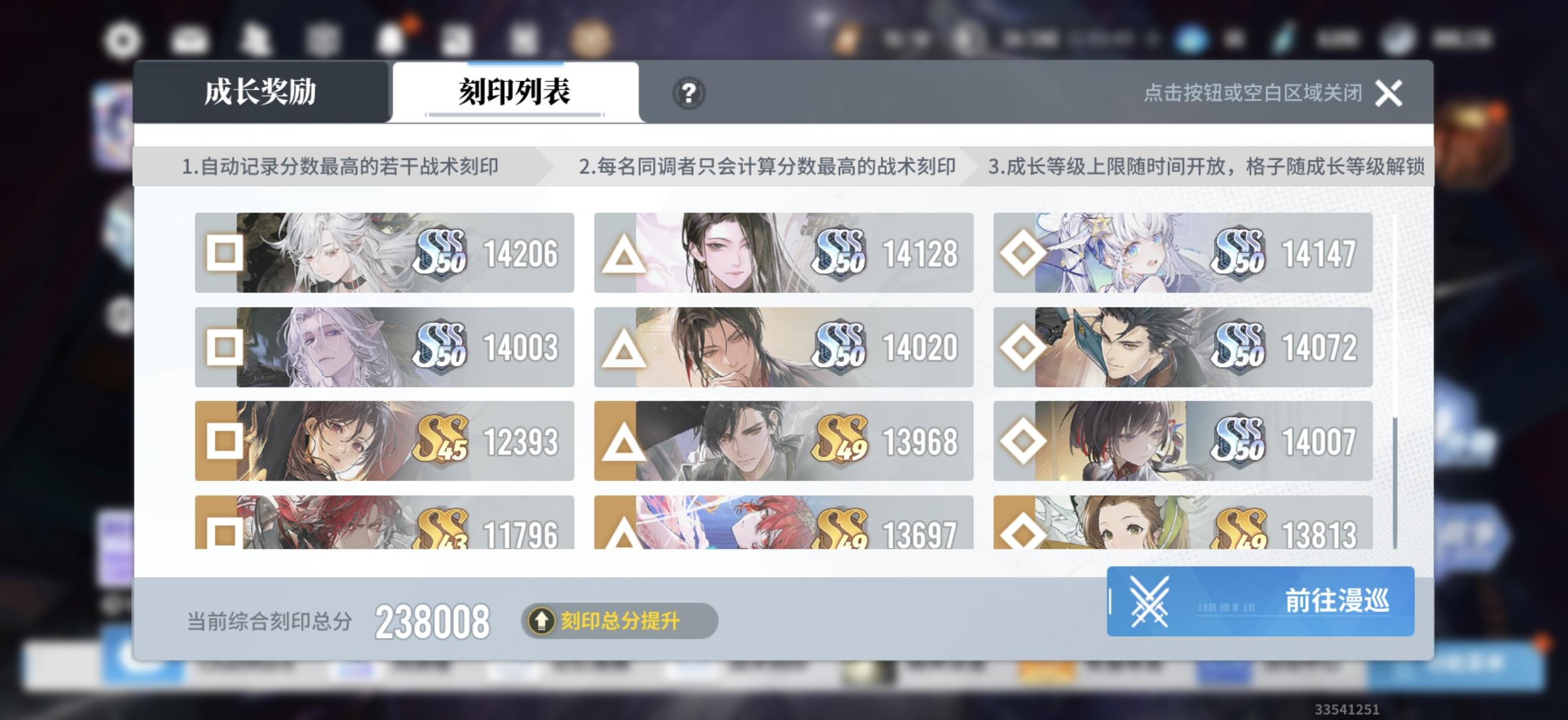看到白荆回廊停更了。想着趁周年庆赶一赶进度。之前回坑过几次,但都是因为落的进度太多了,玩几天就又不想玩了。现在趁着停更想补一补角色和烙痕。各位大佬给点建议,现在应该优先补哪些角色和烙痕,新UP应该抽几花?