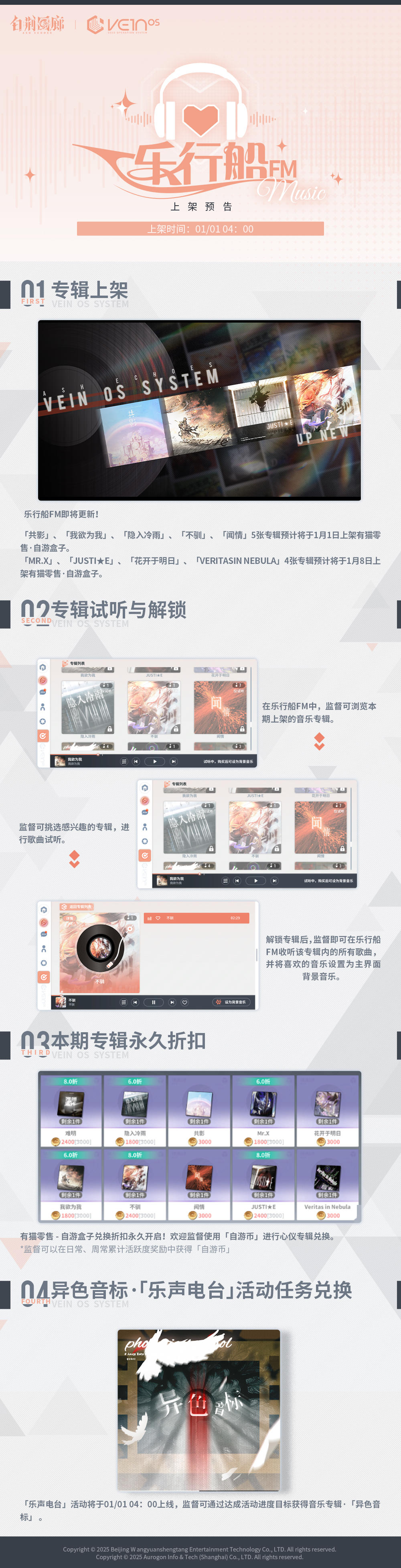 ▶更新时间01/01 04:00 ▶功能入口左下角Vein OS平板 - 乐行船FM更多本期乐行船FM更新信息,请查阅下方长图。 #白荆回廊 #白荆回廊二周年