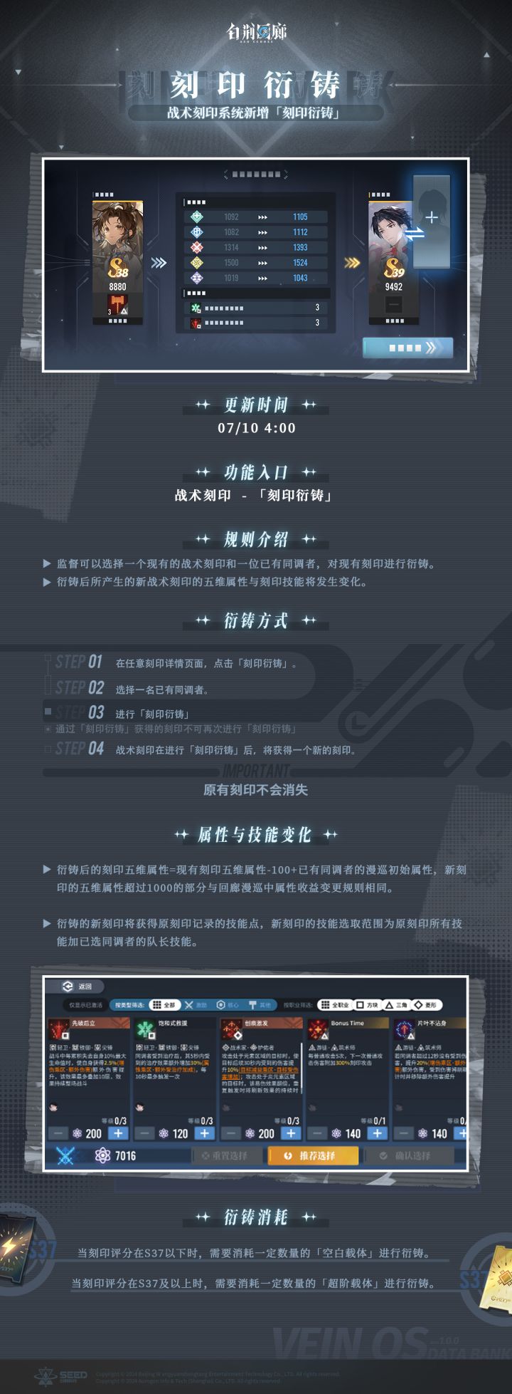 ▶更新时间07/10 04:00▶功能入口战术刻印 - 「刻印衍铸」更多系统详细说明,请监督参看下图。#白荆回廊