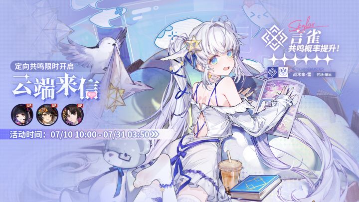 ▶开放时间07/10 10:00 - 07/31 03:50▶UP同调者★6言雀★5司危、尚非乐、白鸟梓更多详细共鸣信息,监督可登录游戏获取。 #白荆回廊 #向烟火许愿吧