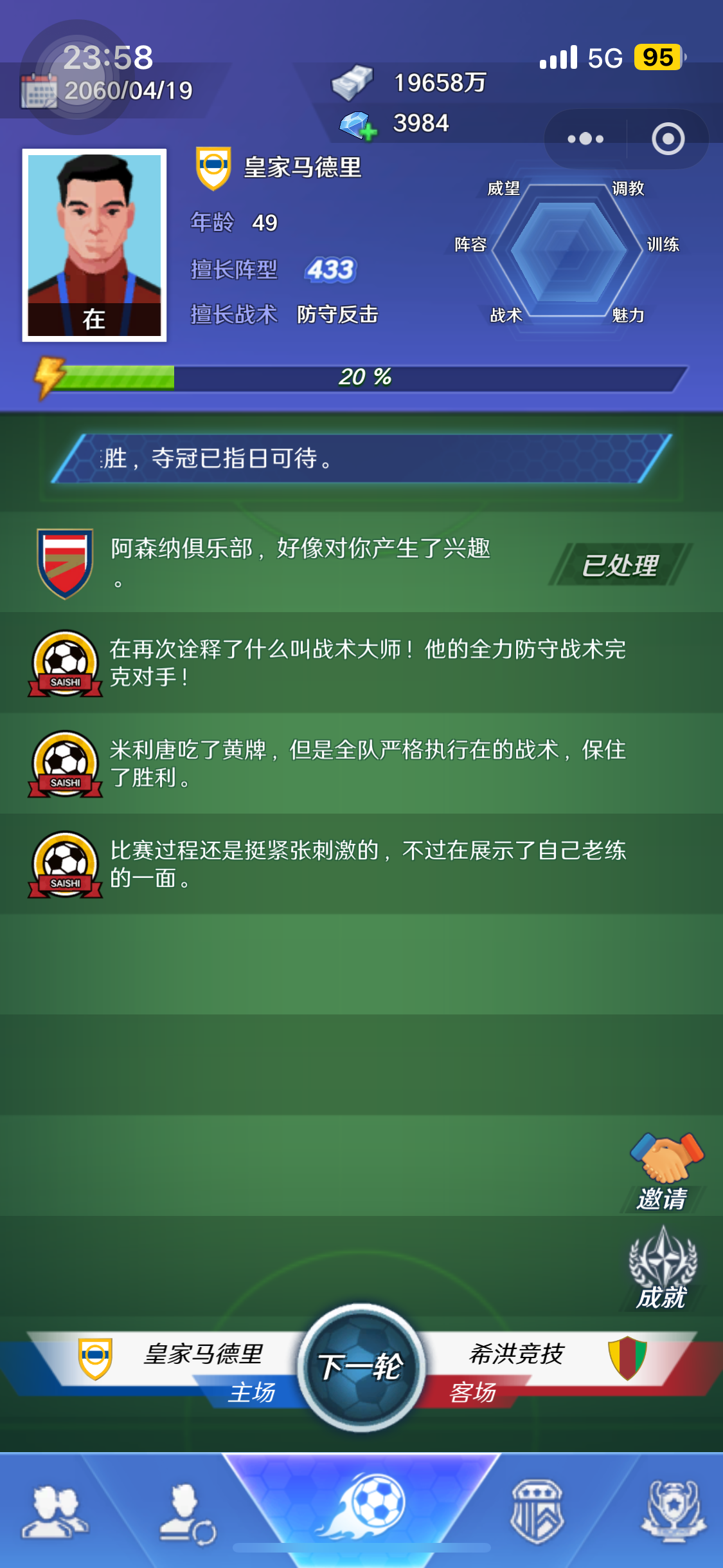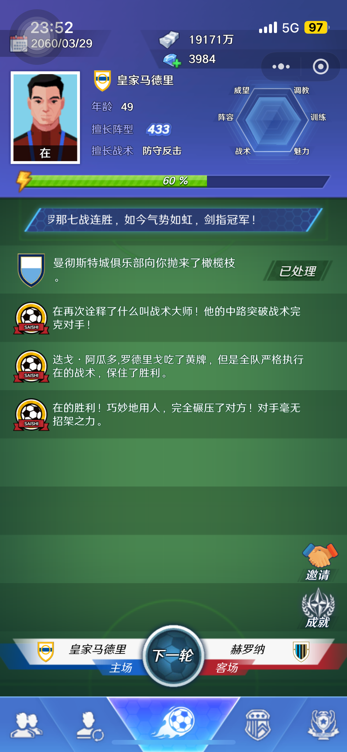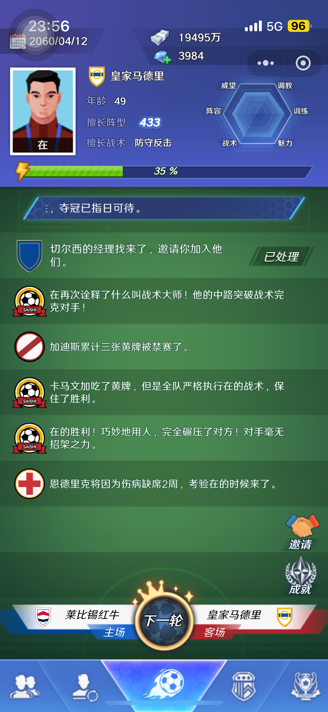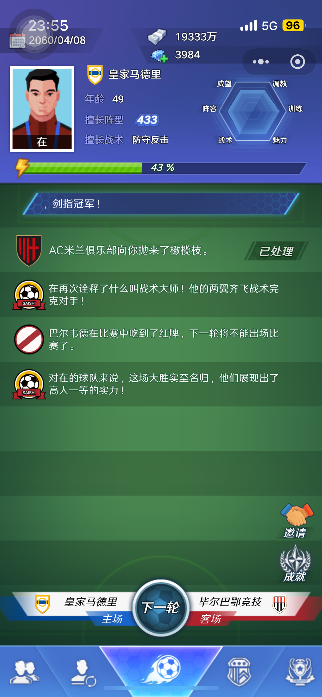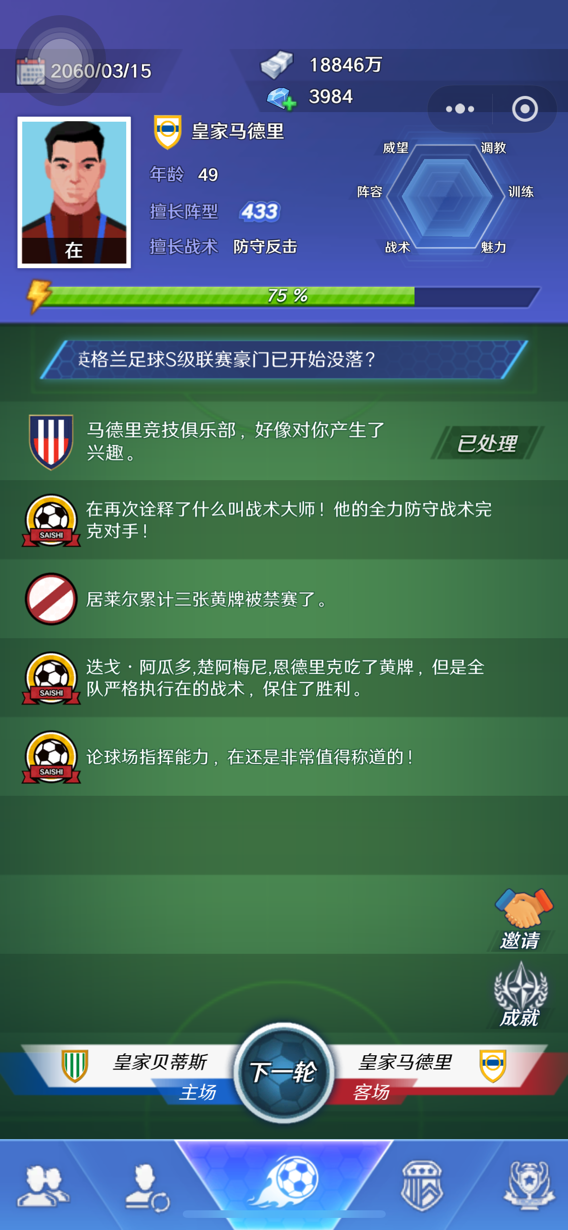 豪门来袭,真的发现皇马的阵容还没我现在的好,换个新的俱乐部起码要五年才能成型,不过他给的转会费高,年联赛冠军加欧冠冠军有4亿+,结果我刚走联赛都保不住欧冠一人游,太废了