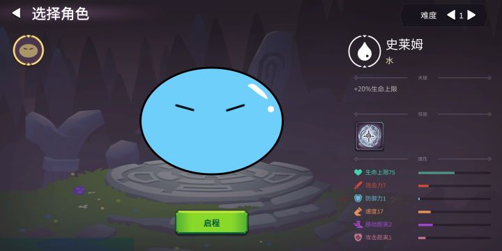 目前就一只史莱姆+1大关,难度分1-10(听说没实装,选哪个都一样)。