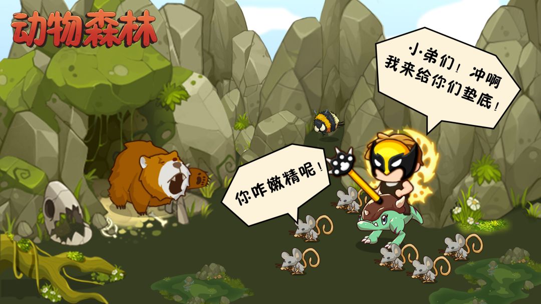 玩家通关指南 1、第一章抓螳螂。 2、第二章抓蜥蜴。 3、第三章缩小面具配小黑龙宝宝。 最开始是老鼠,后抓3只兔子,兔子里面有只会进化变大成为头领,头领战死可以自己复活,把动物等级刷上去后,全部抓兔子,再去刷鹿,有时候路边有钻石矿可以挖,有的树可以传送必须有骨头,骨头可以卖钱,在洞穴里有个天平状的装置,晚上很危险就在洞穴附近刷老鼠,我带八只鹿和10只兔子被三只应该是河马秒杀,所以不要走太远,地图上