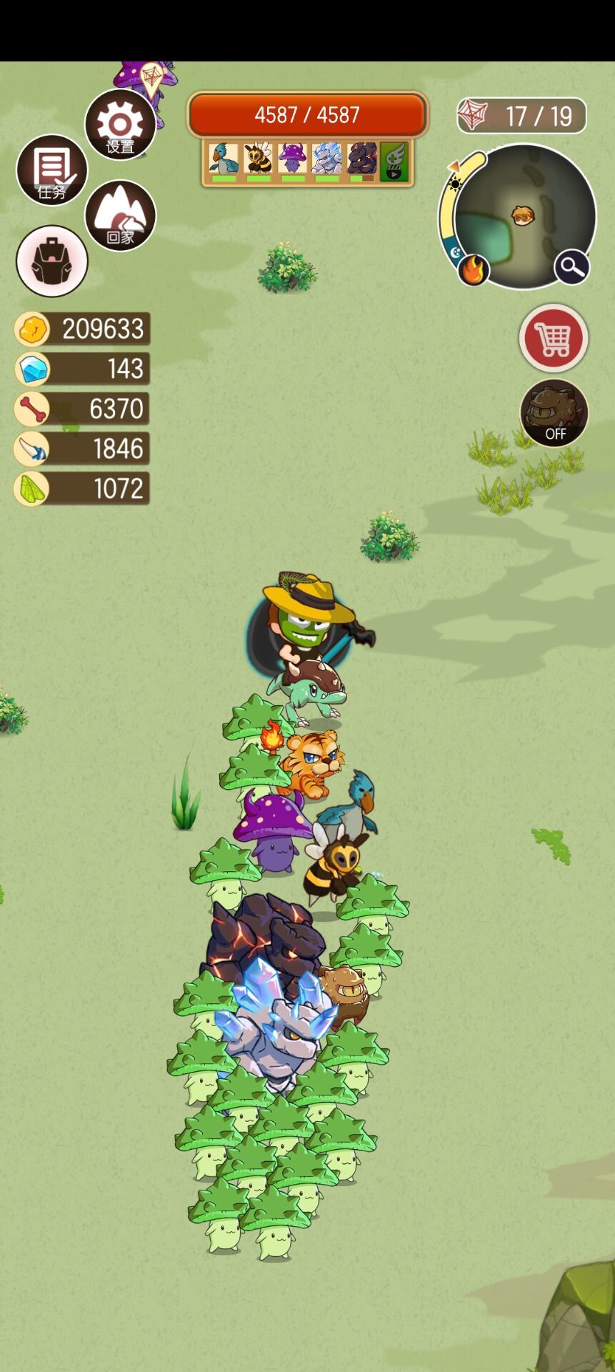.岛一:1 有钻石就开格子,增加带动物的上限,有余裕就刷个探宝面具。仅快探索完岛1,才能打与买螳螂,带25只螳螂去打老虎和猛玛就可通关。 .岛二: 开格子到30格,快速探地图。带30只蜈蚣去打BOSS。 .岛三: 这一关开始有难度。因为怪很硬,而且回收率变低,因此打BOSS都是农钱买顶级动物去打,很耗钱的关卡。(真的缺钱,还是可用农来的钻石去换。) 快速探索地图到找到金螳螂,带30只金蜈蚣打厚头龙、翼龙、暴龙。