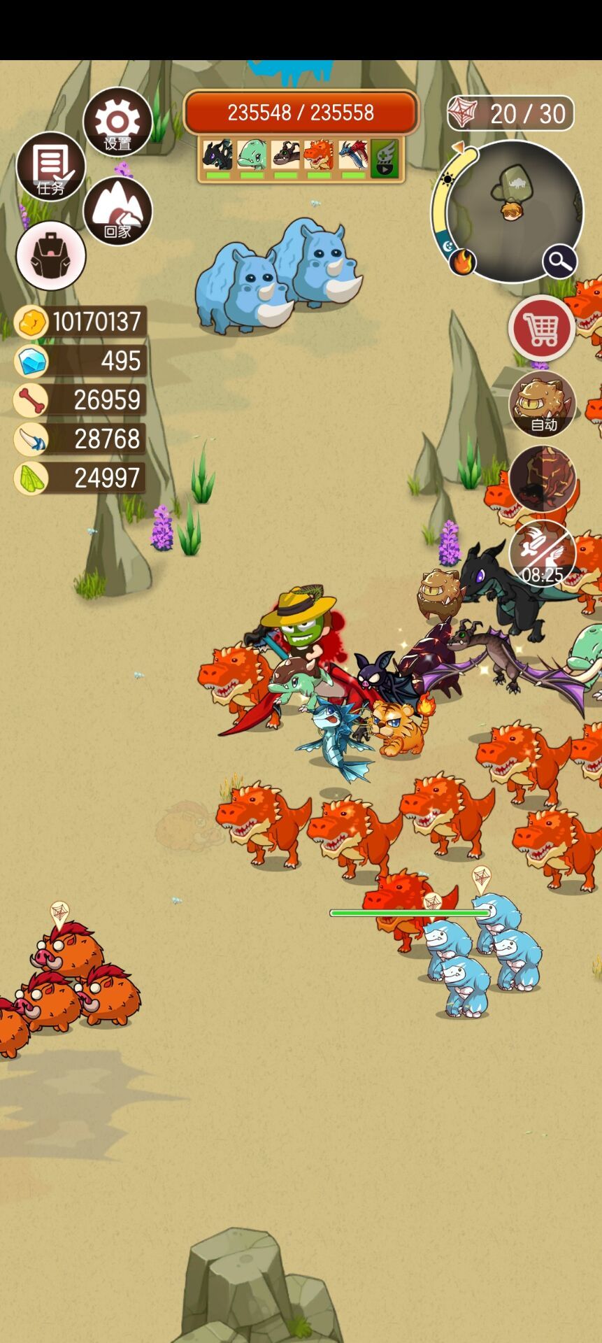 玩了大半天,一失败回到解放前。带着6头犀牛、5只鳄鱼纵横荒地~~呃,外围。路遇眼镜蛇出没,不知天高地厚就冲。