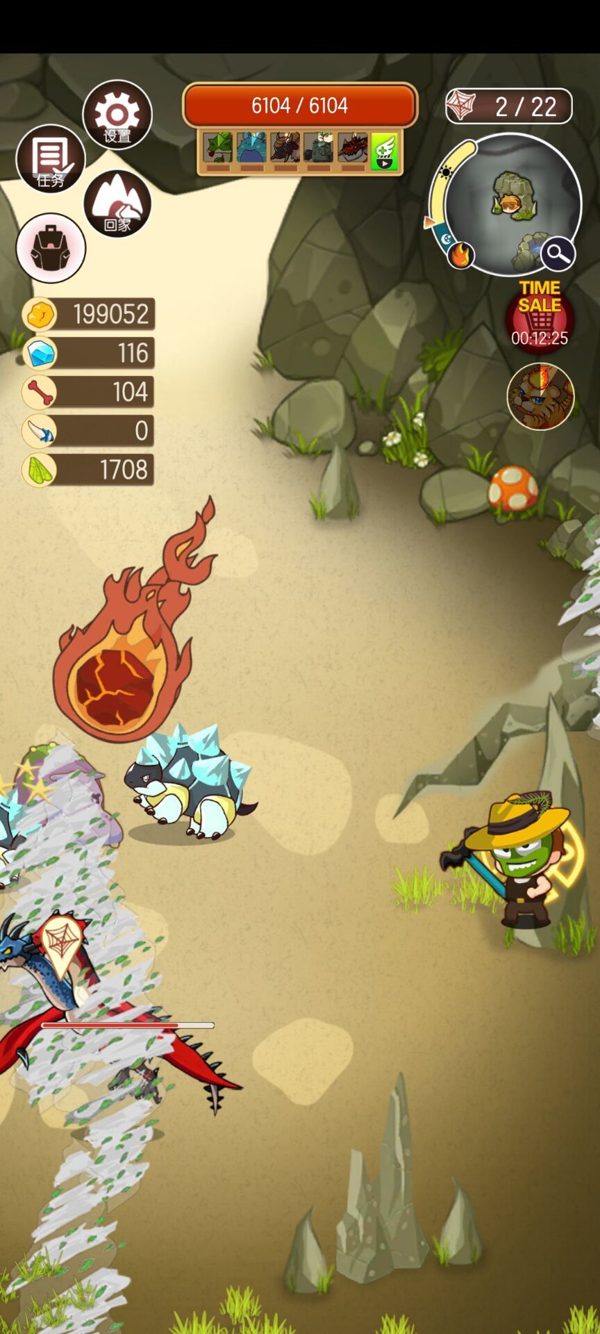 携带的三个英雄级我没有刻意刷,上图也可以看到都还是一级的,出门我带的都是三图boss巨龙,只有这个可以买,血量在后期确实不优秀,好在攻击力高且可释放技能。觉得乏力的,把小地鼠自动获取素材卸下来,抓图里的野怪维持。
