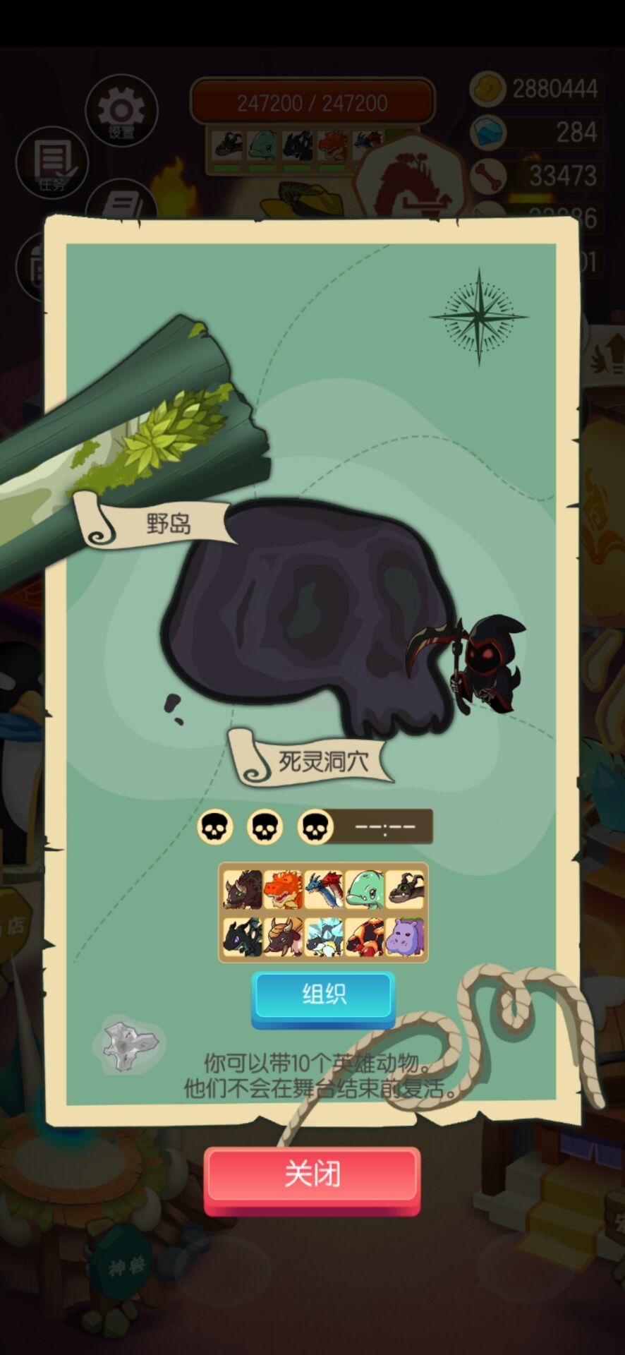 岛一 有钻石就开格子,增加带动物的上限,有余裕就用刷个探宝面具。仅快探索完岛1,才能打与买螳螂,带25只螳螂去打石头怪就可通关。 岛二 开格子到30格,快速探地图。带30只蜥蜴去打龙。 岛三 这一关开始有难度。因为怪很硬,而且回收率变低,因此打王都是农钱买顶级动物去打,很耗钱的关卡。
