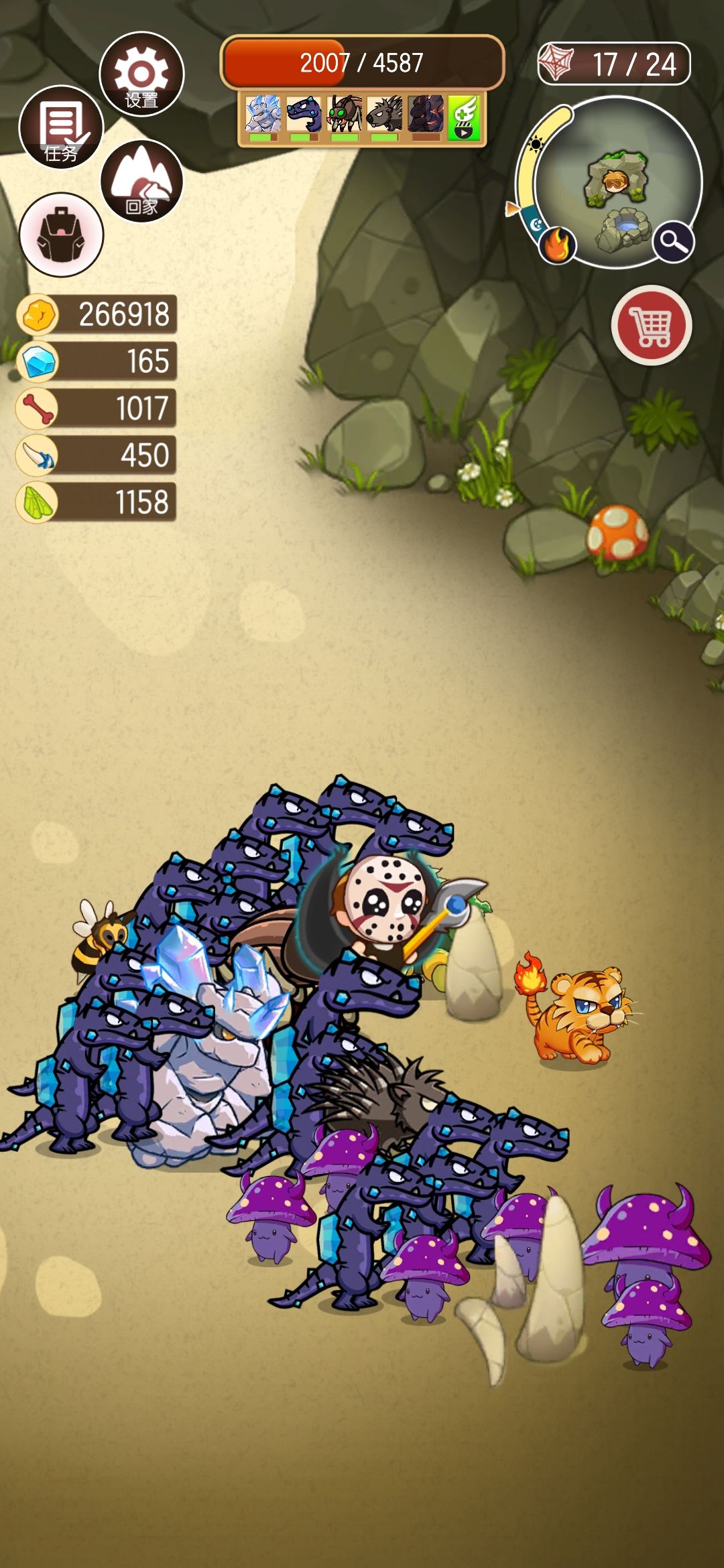 很多人说第三关不好过,打不过的,就带宠物炸弹怪,进boss洞穴后,主角死掉了,别点返回家园按钮,因为炸弹怪是没有血量的,所以boss打不死炸弹怪,主要你不点返回家园,炸弹怪就会每30秒去炸一次boss,而且你的英雄动物也会一直复活去打boss,只要你不点返回家园,就能磨死boss
