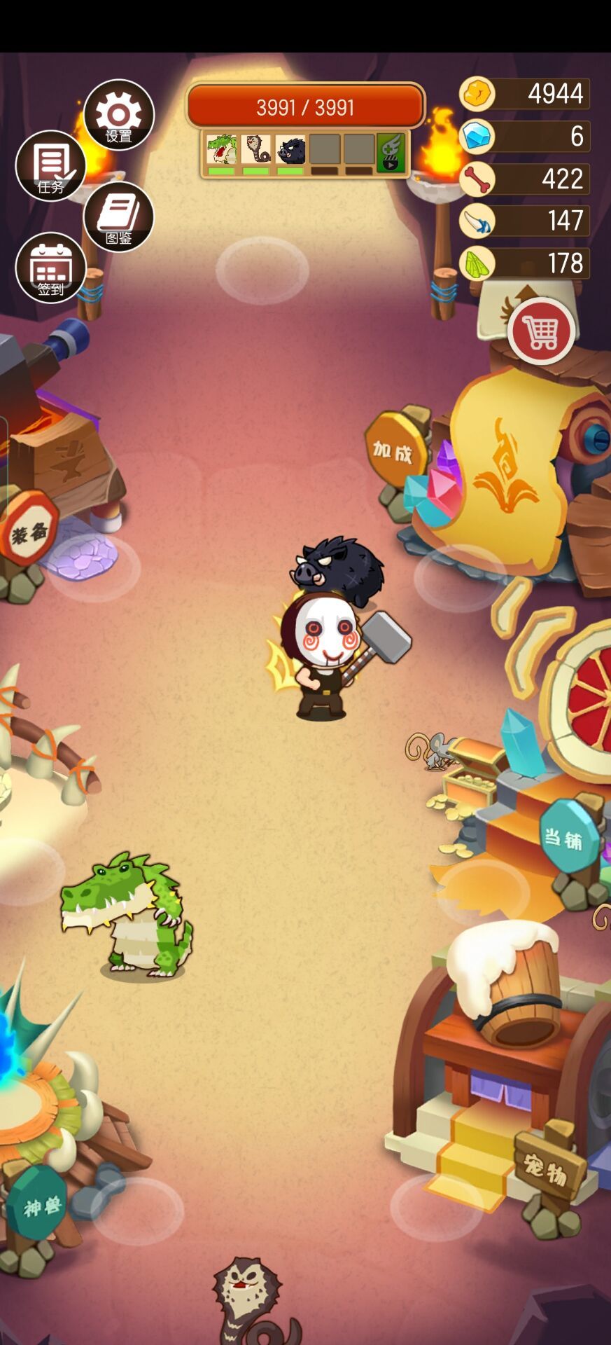因为打第三关需要买很多很多的龙,所以打第三关需要很多金币,可以用钻石面具去图1探钻石,来用钻石换取大量金币,游戏进度越靠后,换取的金币越多,我记得几十钻石能够换好多万金币吧,太久不记得了