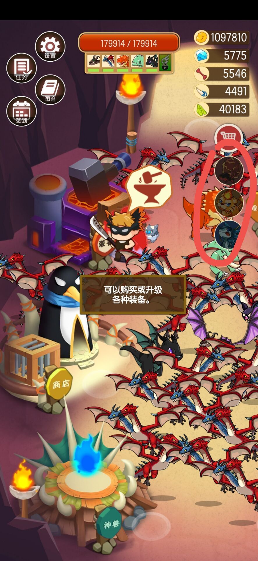 一,神兽 可复活,钻石升级,免费的是看两天广告活得的火焰虎,属性还不错,算前期主力 二,培养动物 靠杀野生动物获取及升级,每种只能召一只,可无限复活,算是同期主力,意思就是遇到同类能打,遇到强力动物就跪,毕竟比同期野生动物多了几级