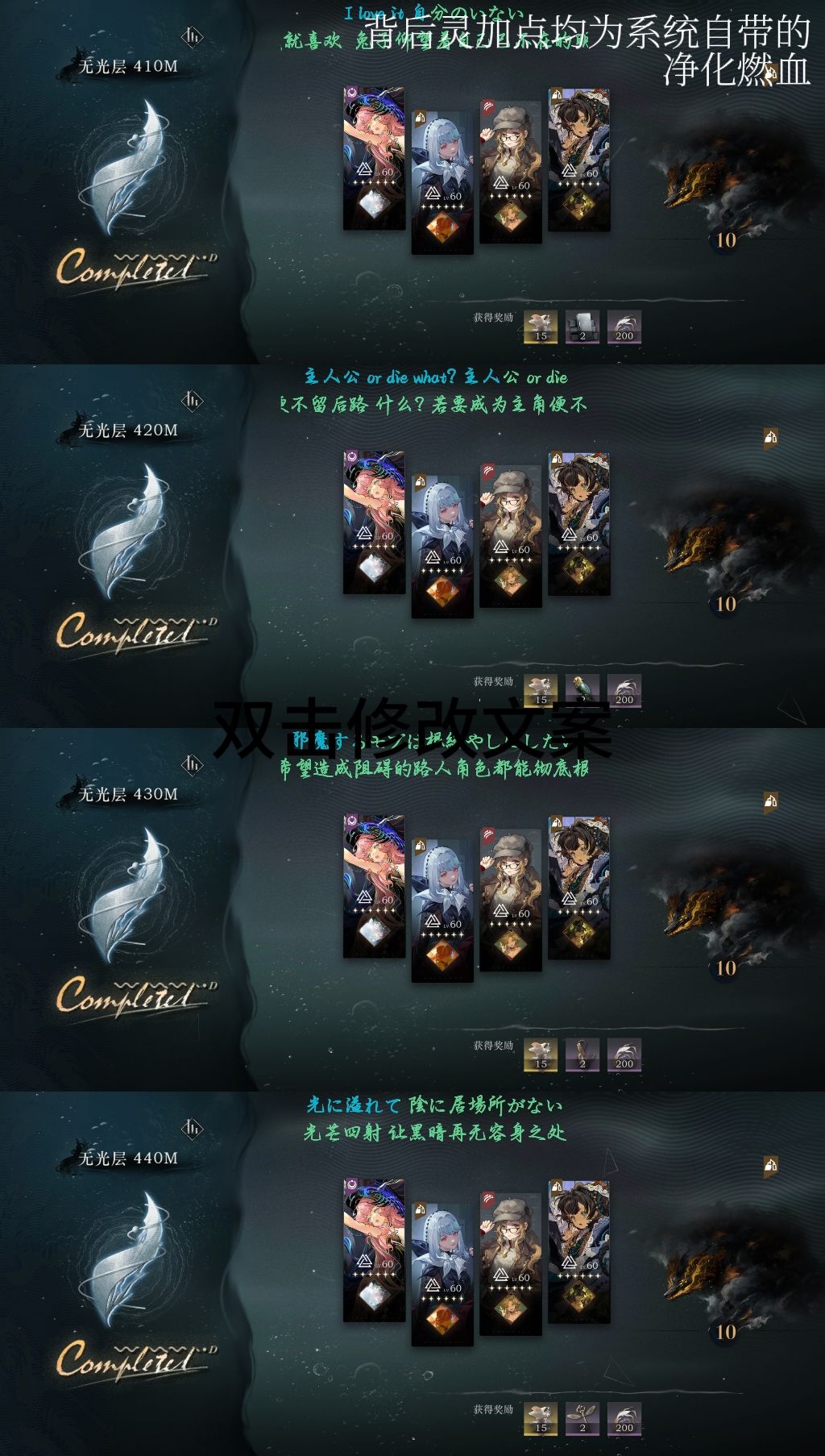 这次更新的大型常驻玩法雨中悬想治好了我玩1999全程自动,不带脑子的病[表情_流口水][表情_流口水] 如图所示,(迷思海200m-1忘记截图了)[表情_斜眼笑]攻略中除了苏芙比无心歪到两塑以及柏林以东满塑外,其他0塑,应该是很亲民的吧[表情_晕了][表情_晕了]。 先讲一下迷思海200-1吧,拿三体人就行了,卡卡尼亚天使娜娜外带两挂件随便打 200-2和3需要卡轴,(不能无脑自动好痛苦!!)