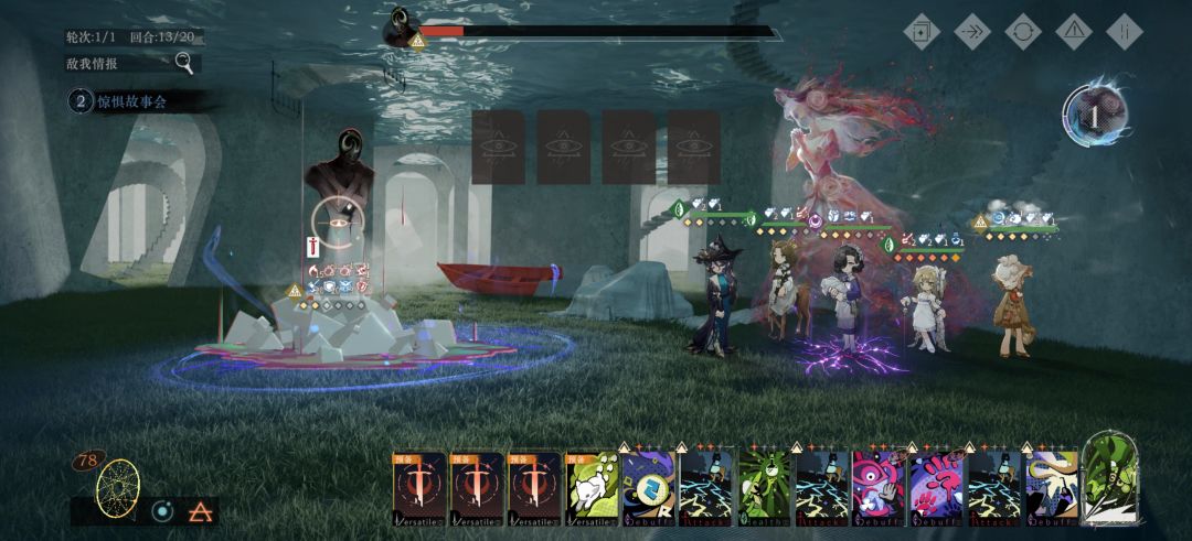 简单好过,塑造不用高,槲寄生、安安、小鹿都要狂想。 要点:1、安安增益牌全覆盖,特别是在有小怪的时候,有安安增益再丢群攻技能,或者小鹿10层被动群攻技能选中小怪,实在不行槲寄生大招安排上,很容易能石化2/3回合,再多丢群攻技能基本永控小怪。 2、小鹿单体技能留着,留意boss头上石化抗性有没有,没有抗性后准备控上再接小鹿单体,背后灵加安安,很容易就有3阶牌,必定暴击一下五六万 3、安安柏林buff